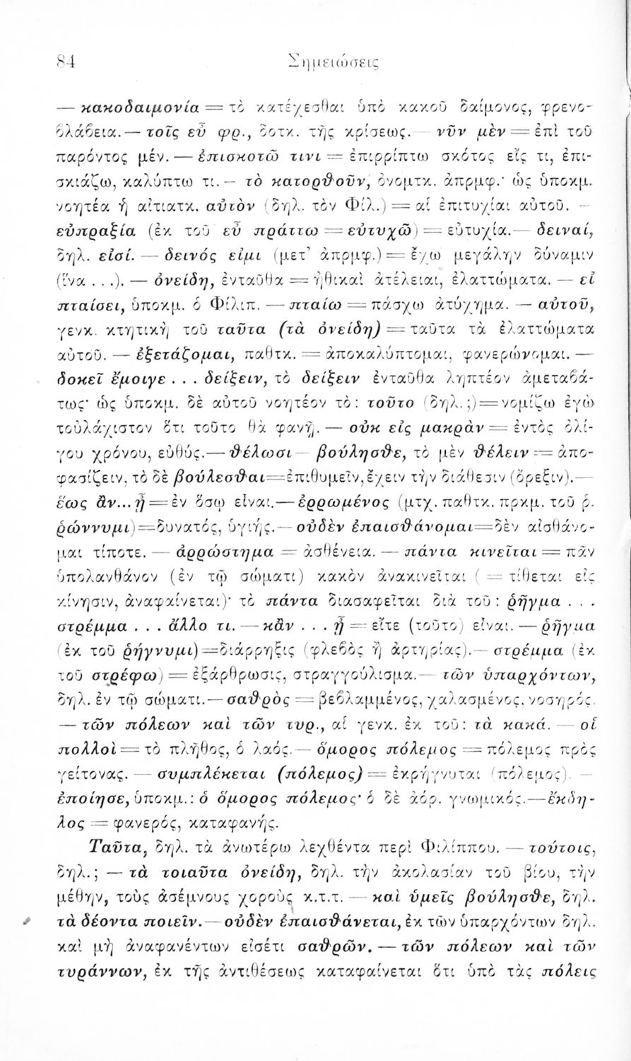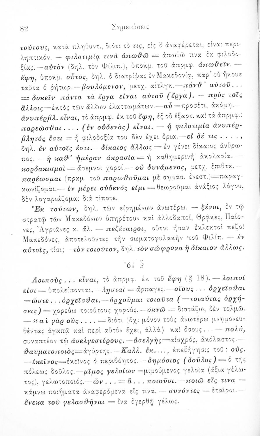 Σχολικό εγχειρίδιο Αρχαίων Ελληνικών Δ΄ Γυμνασίου που περιέχει τους Ολυνθιακούς Α΄ και Β΄ και τους Φιλιππικούς Α΄ και Β' του Δημοσθένη, ερμηνευτικά και πραγματολογικά σχόλια και γραμματικές παρατηρήσεις.