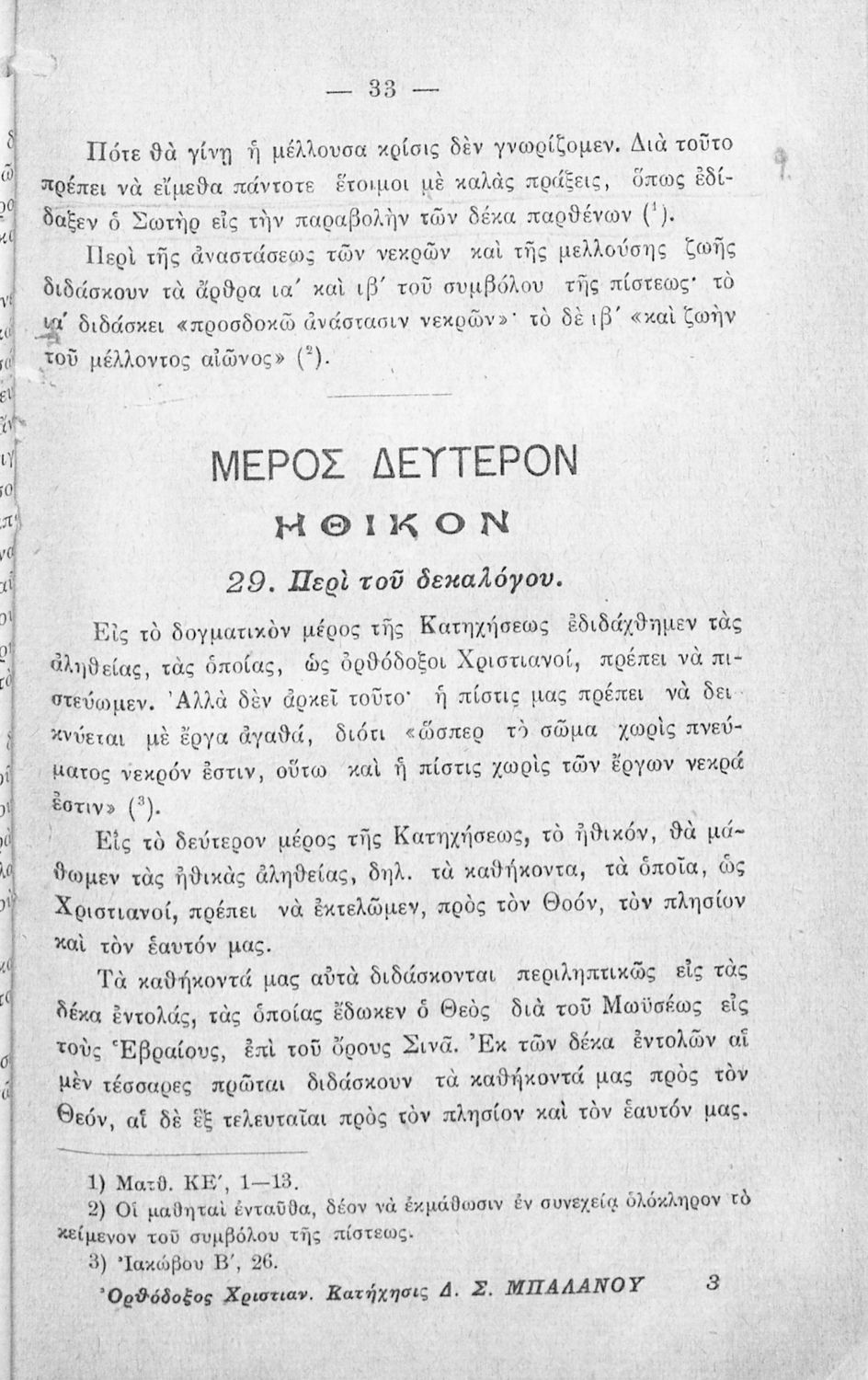 Σχολικό εγχειρίδιο Θρησκευτικών για τα Ελληνικά Σχολεία και Παρθεναγωγεία που εστιάζει σε θέματα χριστιανικής ηθικής και σε δογματικά και ηθικά ζητήματα της ορθόδοξης κατήχησης.