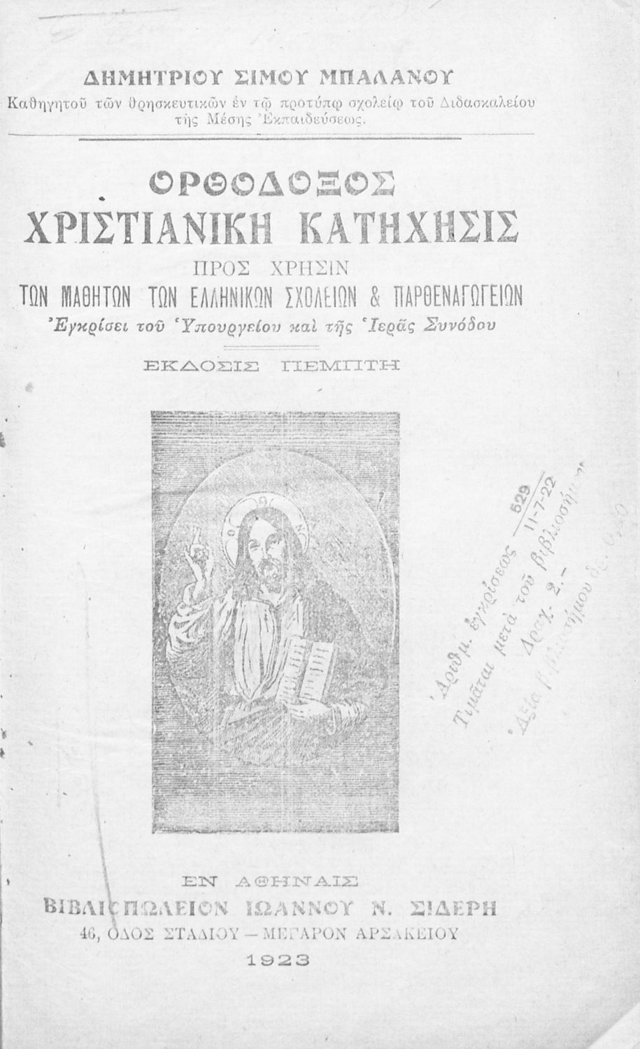 Τίτλος: Ορθόδοξος χριστιανική κατήχησις προς χρήσιν των μαθητών των Ελληνικών Σχολείων και Παρθεναγωγείων