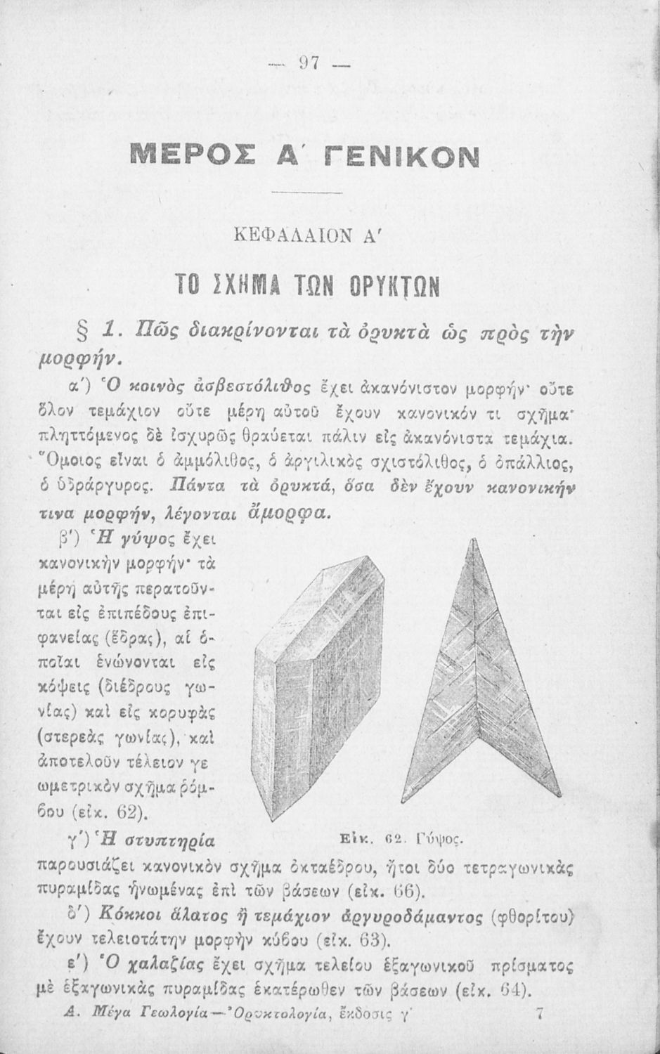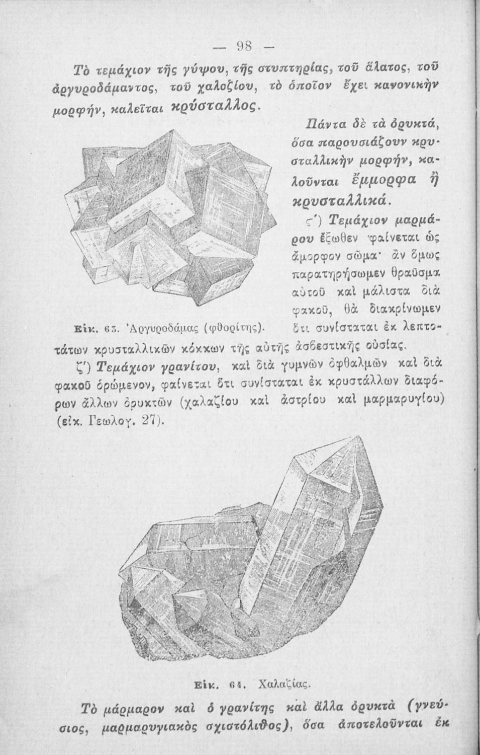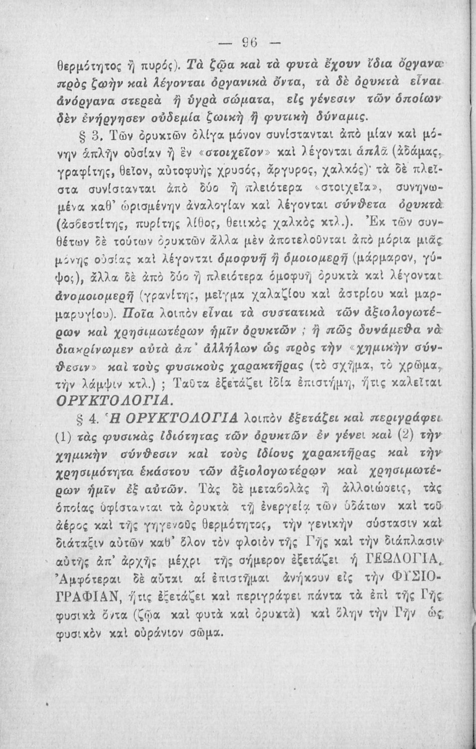 Βιβλίο Γεωλογίας/Ορυκτολογίας για την Δ΄ τάξη των Εξαταξίων Γυμνασίων που παρουσιάζει τα ορυκτά με βάση την κλάση στην οποία ανήκουν. Το τμήμα της γεωλογίας εστιάζει στους γεωλογικούς αιώνες, Ο συγγραφέας ήταν