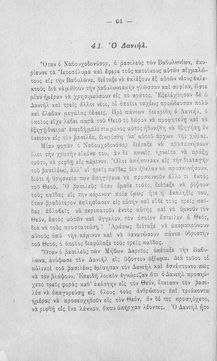 Σχολικό εγχειρίδιο Θρησκευτικών για τα Ελληνικά Σχολεία που αποτελεί μια εξιστόρηση της Παλαιάς Διαθήκης από την δημιουργία του κόσμου μέχρι την ιστορία του Δανιήλ.