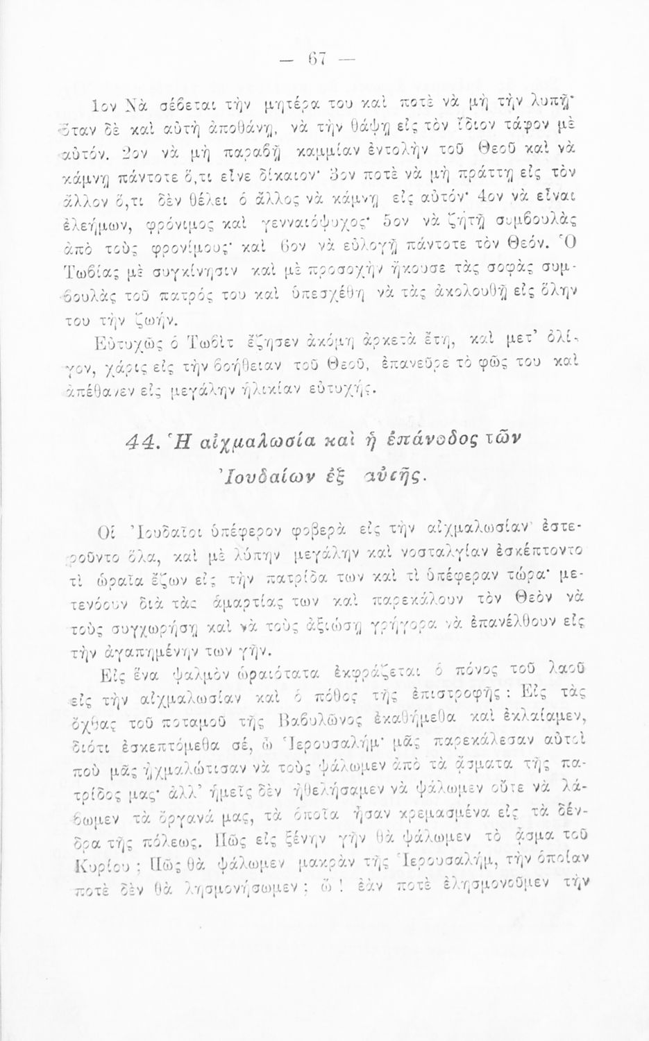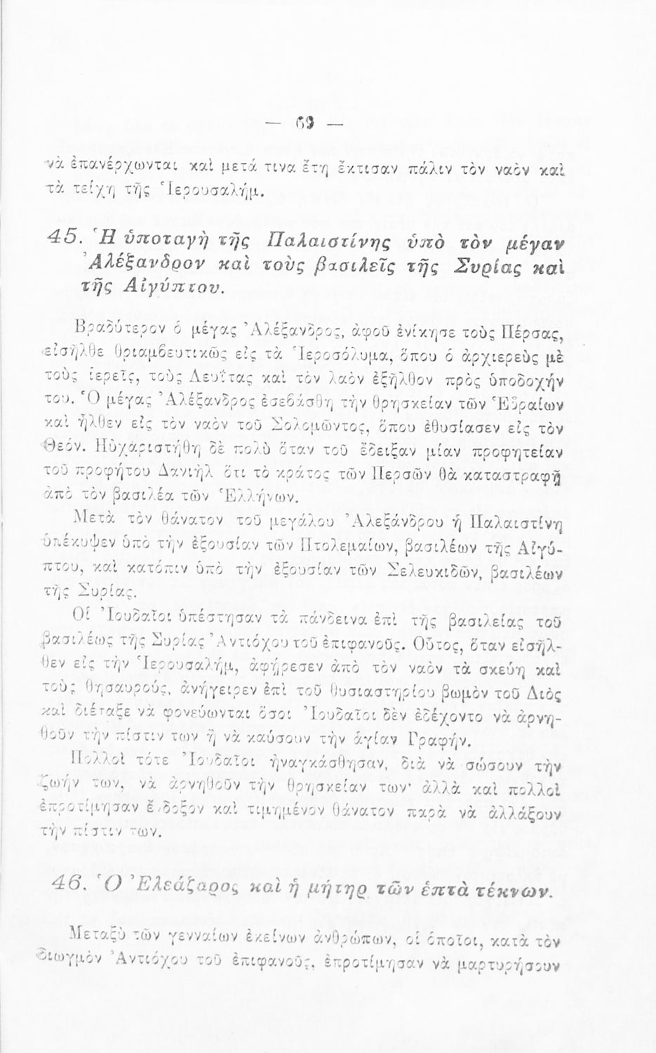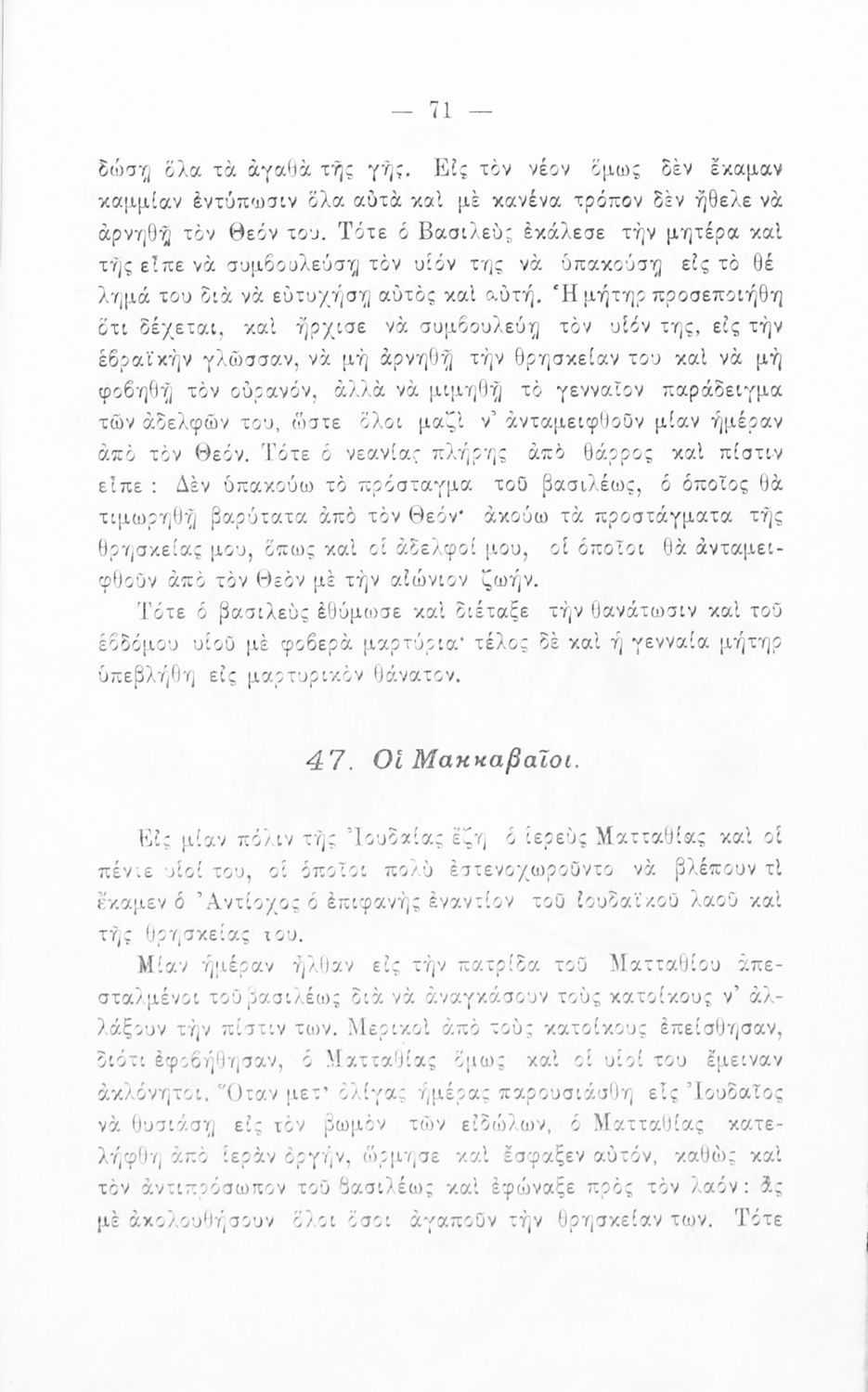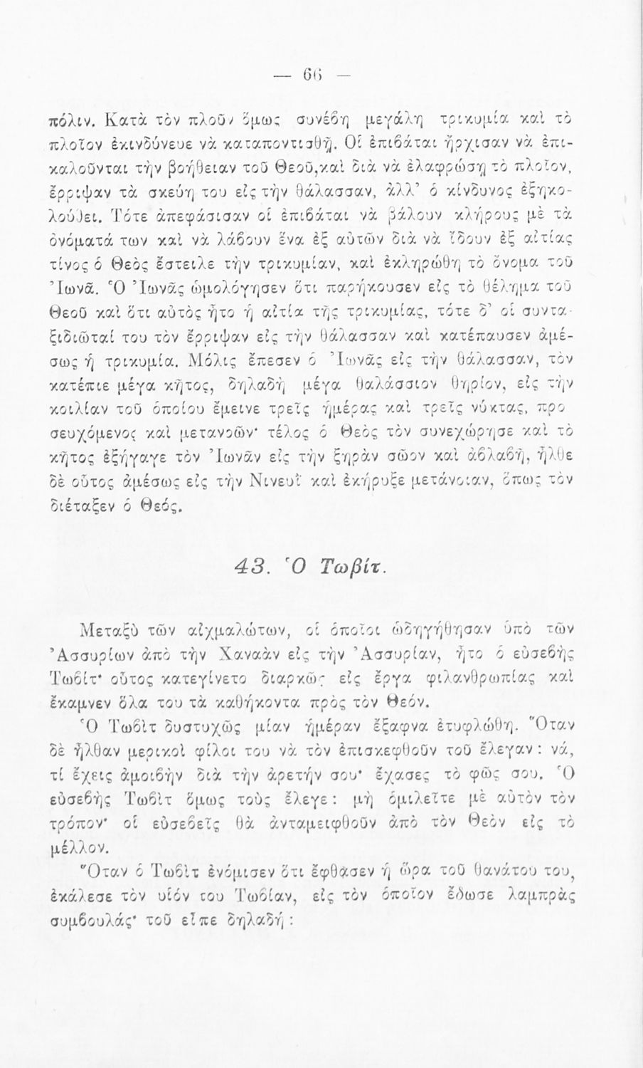 Σχολικό εγχειρίδιο Θρησκευτικών για τα Ελληνικά Σχολεία και Παρθεναγωγεία που συνιστά μία εξιστόρηση της Παλαιάς Διαθήκης από τη δημιουργία του κόσμου ως τους Μακκαβαίους.