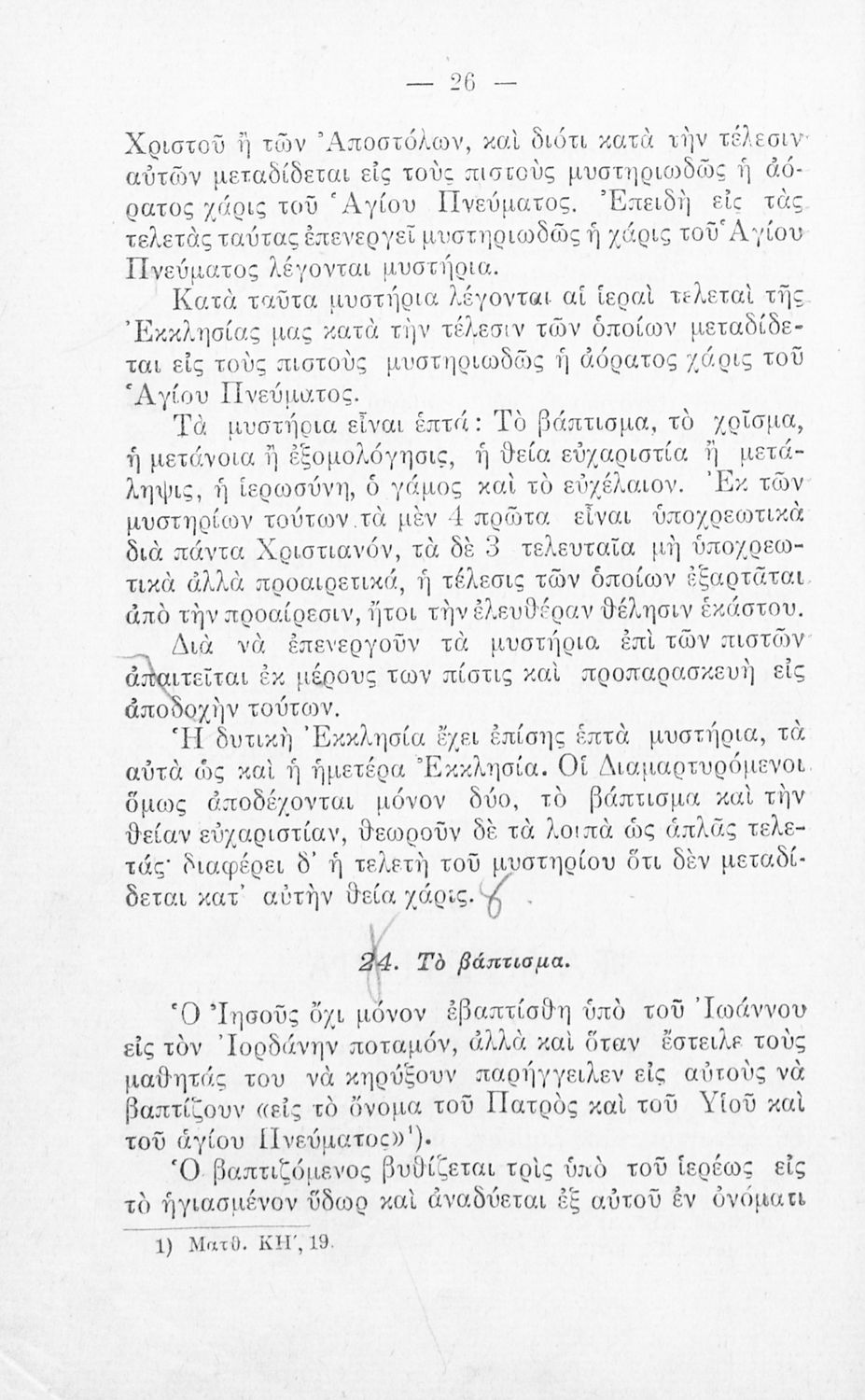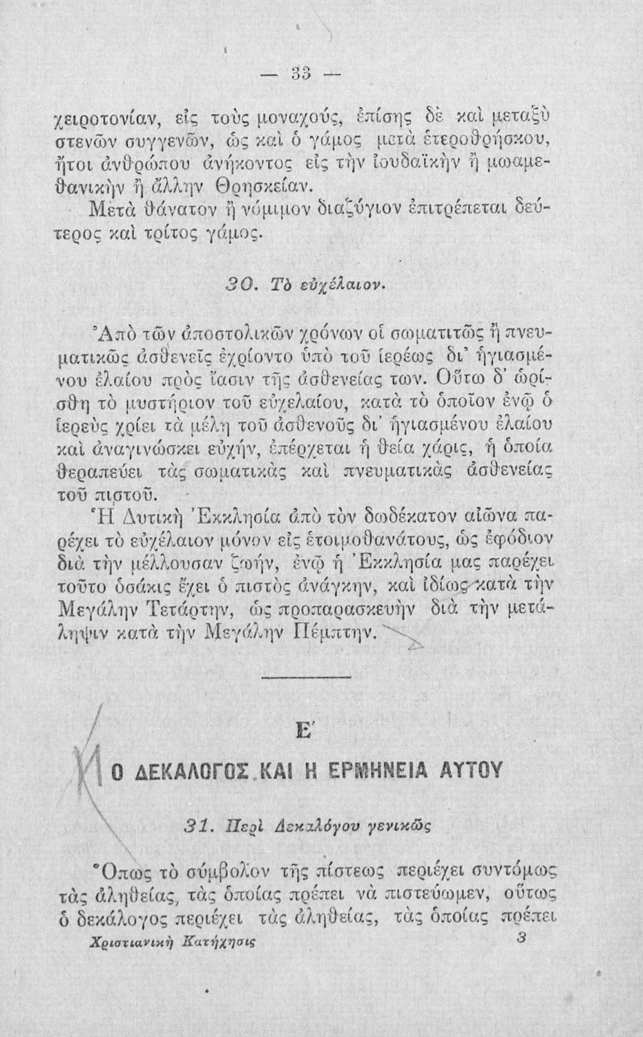Σχολικό εγχειρίδιο Θρησκευτικών που πραγματεύεται ζητήματα της ορθόδοξης κατήχησης όπως τα μυστήρια και οι Δέκα Εντολές. Περιέχει και ερωτήσεις.