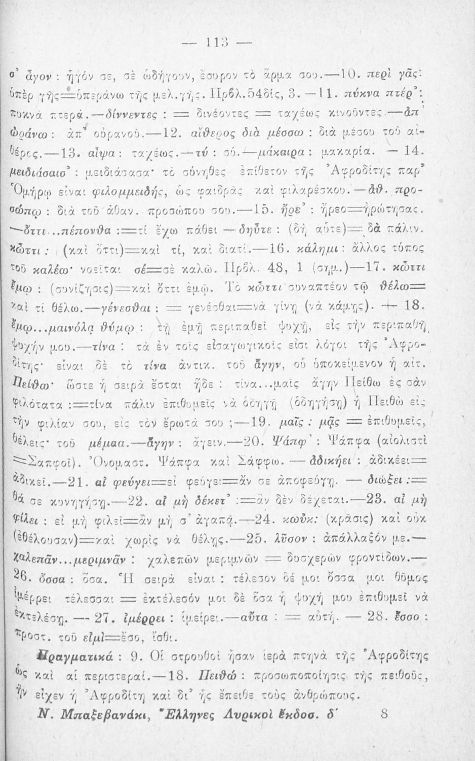 Τίτλος: Έλληνες λυρικοί κατ΄ εκλογήν μετά παντοίων ερμηνευτικών σχολίων και μετρικού παραρτήματος χάριν των μαθητών της Γ΄ Γυμνασιακής τάξεως
