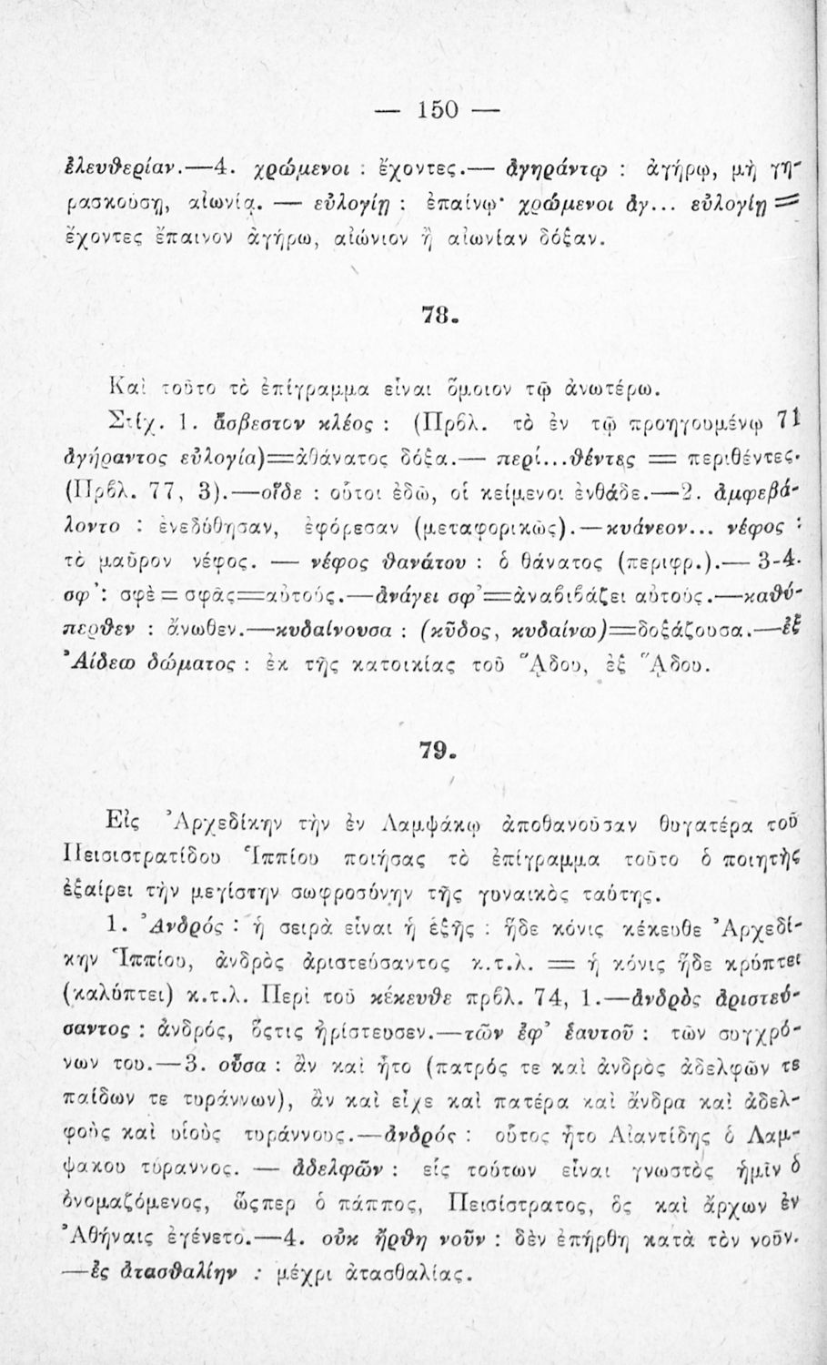 Βαθμίδα εκπαίδευσης: Δευτεροβάθμια Τάξη: Γ' Γυμνασίου Μάθημα: Αρχαία Ελληνικά Γλώσσα: Καθαρεύουσα Παρουσίαση περιεχομένου: Σχολικό εγχειρίδιο Αρχαίων Ελληνικών Γ΄ Γυμνασίου που περιλαμβάνει αποσπάσματα έργων αρχαίων Ελλήνων λυρικών, πολιτικές και γνωμικές ελεγείες, ιάμβους και επιγράμματα. Περιέχει υπόμνημα με ερμηνευτικά, πραγματολογικά, γλωσσικά και γραμματικά σχόλια και μετρικό παράρτημα. |
