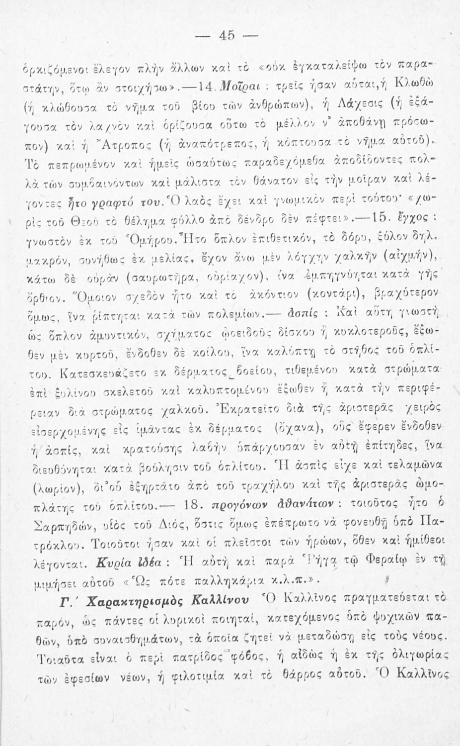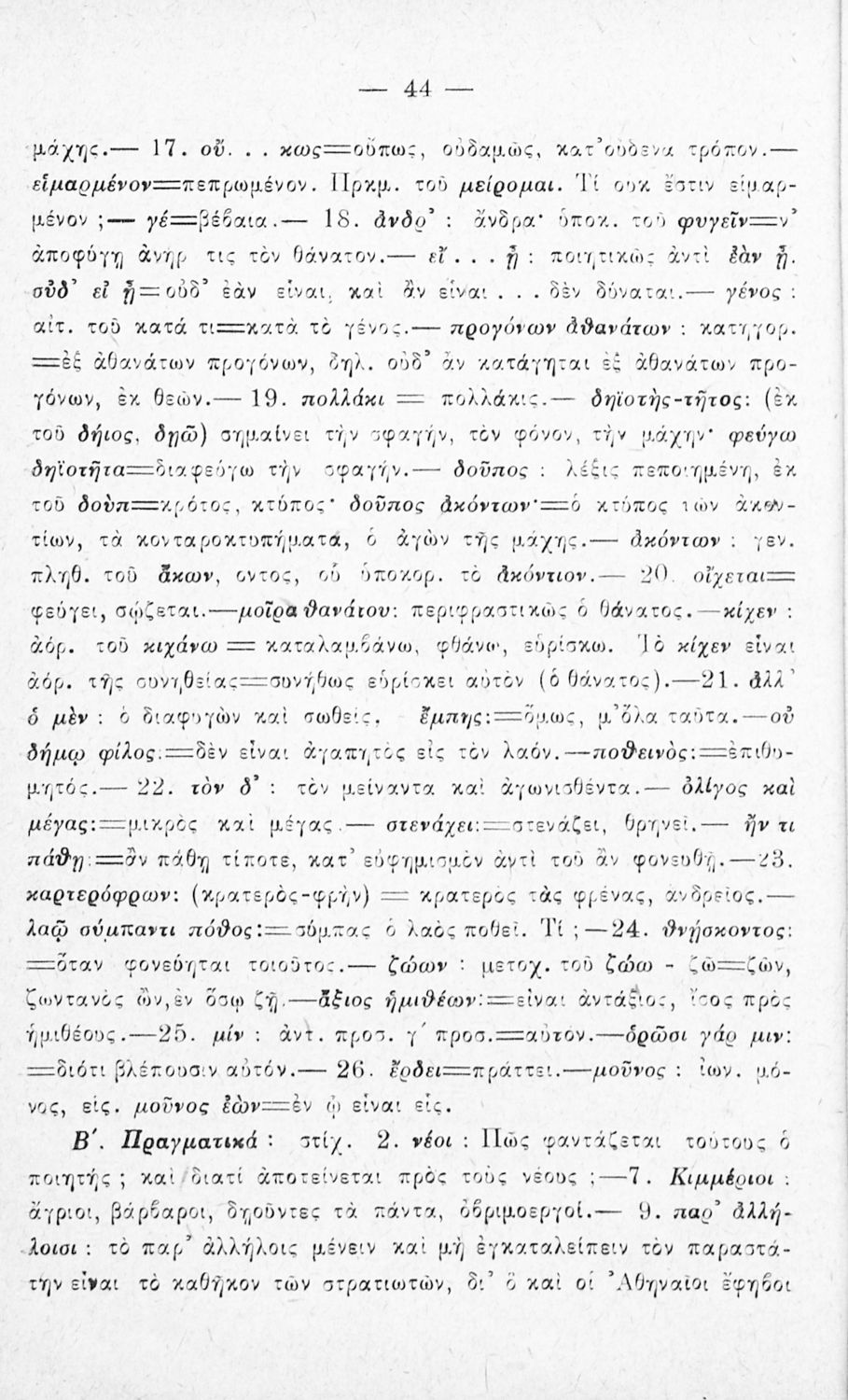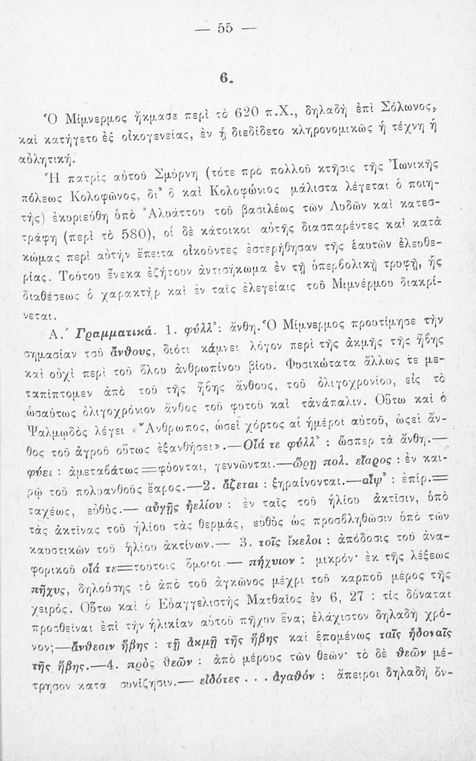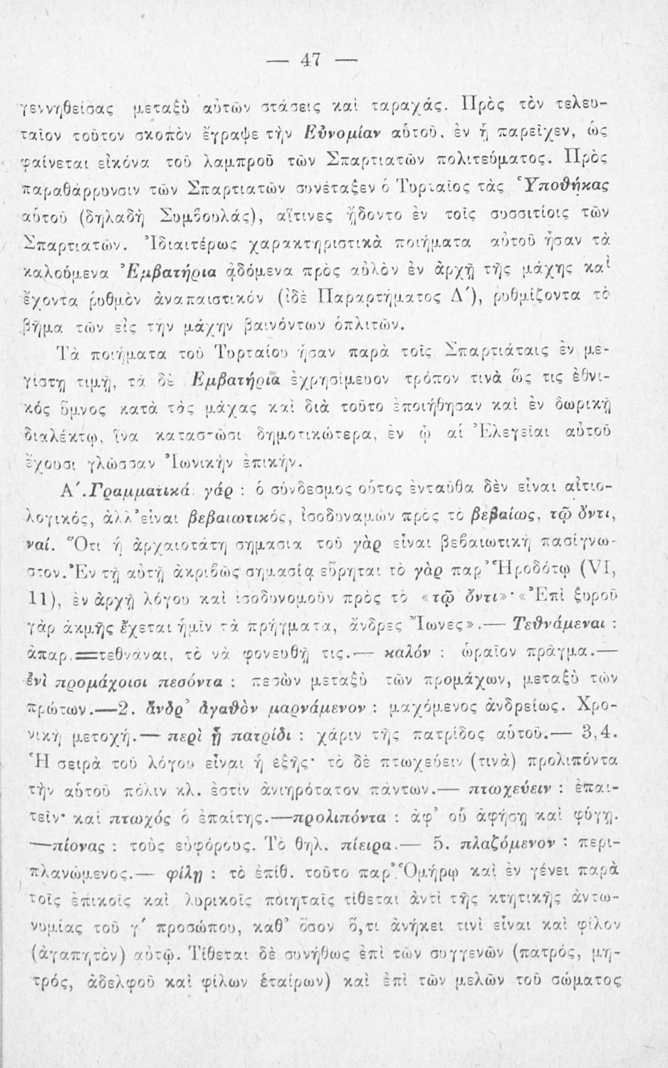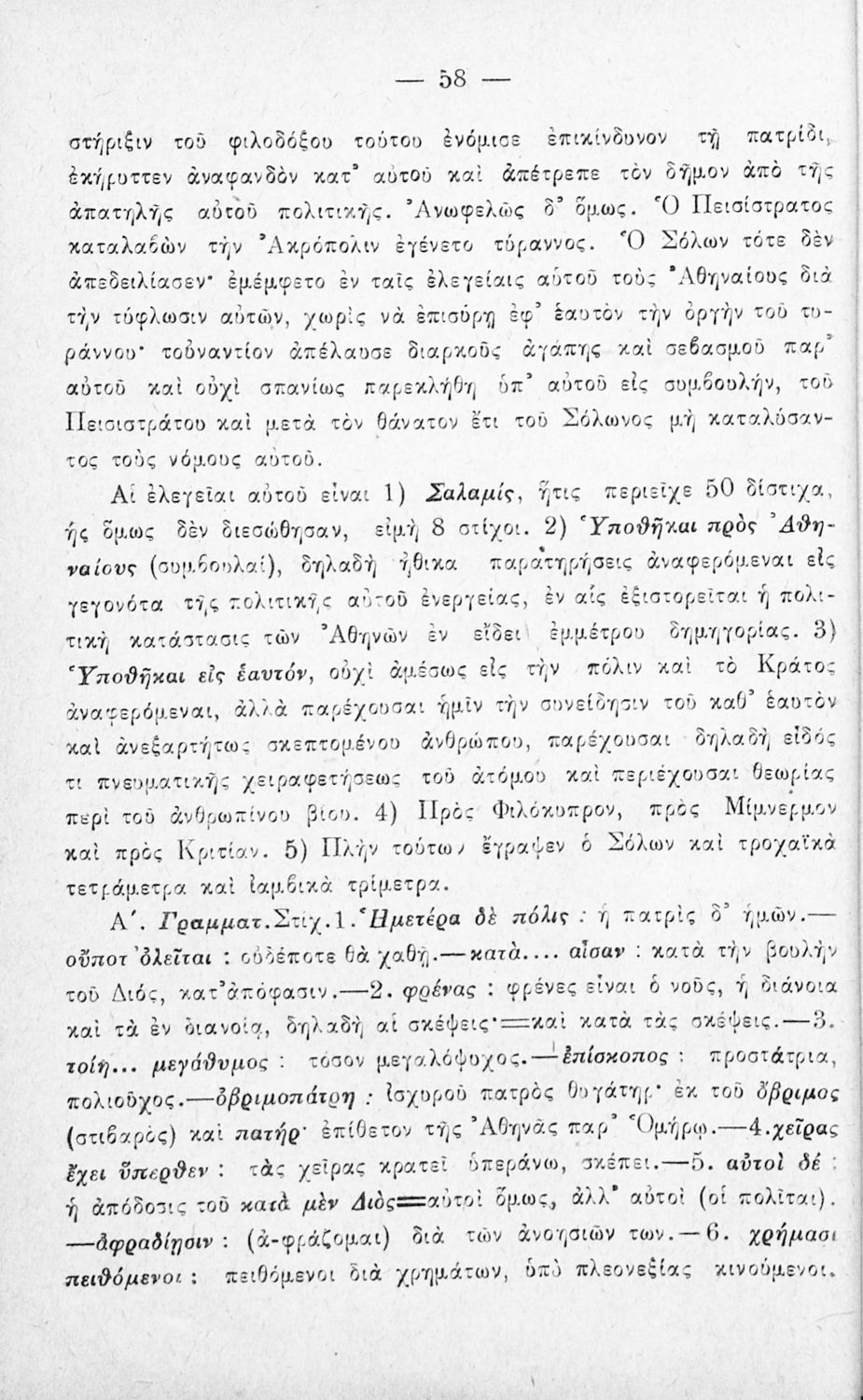 Βαθμίδα εκπαίδευσης: Δευτεροβάθμια Τάξη: Γ' Γυμνασίου Μάθημα: Αρχαία Ελληνικά Γλώσσα: Καθαρεύουσα Παρουσίαση περιεχομένου: Σχολικό εγχειρίδιο Αρχαίων Ελληνικών Γ΄ Γυμνασίου που περιλαμβάνει αποσπάσματα έργων αρχαίων Ελλήνων λυρικών, πολιτικές και γνωμικές ελεγείες, ιάμβους και επιγράμματα. Περιέχει υπόμνημα με ερμηνευτικά, πραγματολογικά, γλωσσικά και γραμματικά σχόλια και μετρικό παράρτημα. |