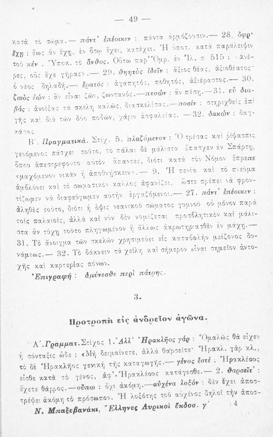 LDR 01591 2200217 4500 035 ## _a02-01916 040 ## _aΕλληνικό Λογοτεχνικό και Ιστορικό Αρχείο 041 ## _ael 100 ## _aΝικόλαος Σ. Μπαξεβανάκις (σχόλια) 110 ## _a1922 ΜΠΑ 245 0# _aΈλληνες λυρικοί κατ΄ εκλογήν μετά παντοίων ερμηνευτικών σχολίων και μετρικού παραρτήματος χάριν των μαθητών της Γ΄ Γυμνασιακής τάξεως 250 ## _a4η Έκδοση 260 ## _aΑθήνα _bΙωάννης Δ. Κολλάρος _c1922 300 ## _a175 _bΕικόνες (ασπρόμαυρες), Σκίτσα (ασπρόμαυρα) 520 ## _aΣχολικό εγχειρίδιο Αρχαίων Ελληνικών Γ΄ Γυμνασίου που περιλαμβάνει αποσπάσματα έργων αρχαίων Ελλήνων λυρικών, πολιτικές και γνωμικές ελεγείες, ιάμβους και επιγράμματα. Περιέχει υπόμνημα με ερμηνευτικά, πραγματολογικά, γλωσσικά και γραμματικά σχόλια και μετρικό παράρτημα. 521 ## _aΓ' Γυμνασίου 522 ## _aΕλλάδα 546 ## _aΚαθαρεύουσα 563 ## _aΜαλακό Εξώφυλλο 583 ## _a27967/30-9-1917 650 #4 _aΕλεγεία _aΙαμβικό μέτρο _aΠίνδαρος _aΣαπφώ _aΣιμωνίδης _aΣόλωνας _aΤυρταίος