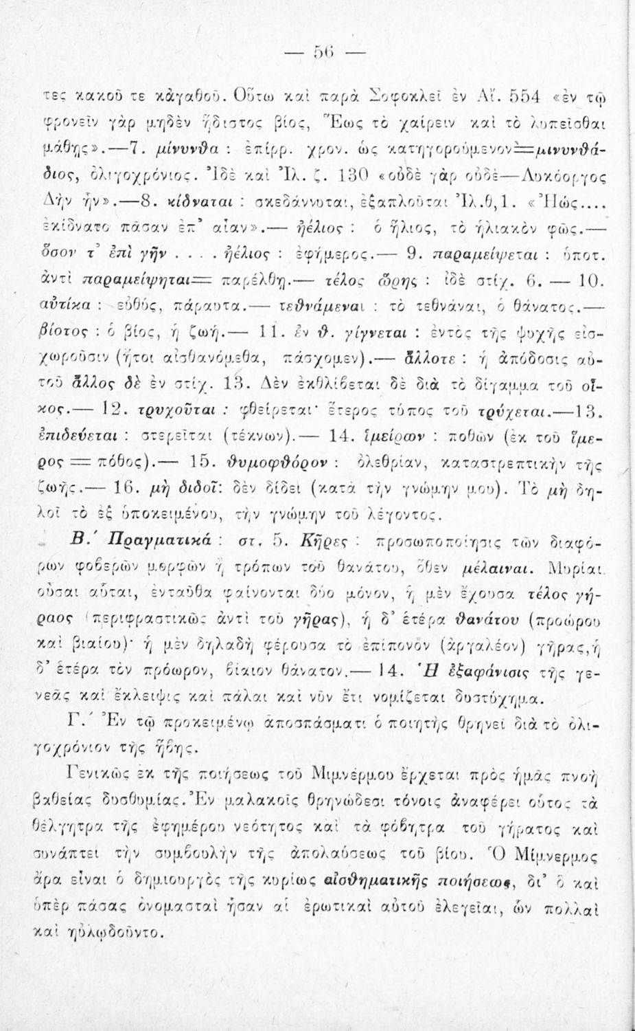 Σχολικό εγχειρίδιο Αρχαίων Ελληνικών Γ΄ Γυμνασίου που περιλαμβάνει αποσπάσματα έργων αρχαίων Ελλήνων λυρικών, πολιτικές και γνωμικές ελεγείες, ιάμβους και επιγράμματα. Περιέχει υπόμνημα με ερμηνευτικά, πραγματολογικά, γλωσσικά και γραμματικά σχόλια και μετρικό παράρτημα.