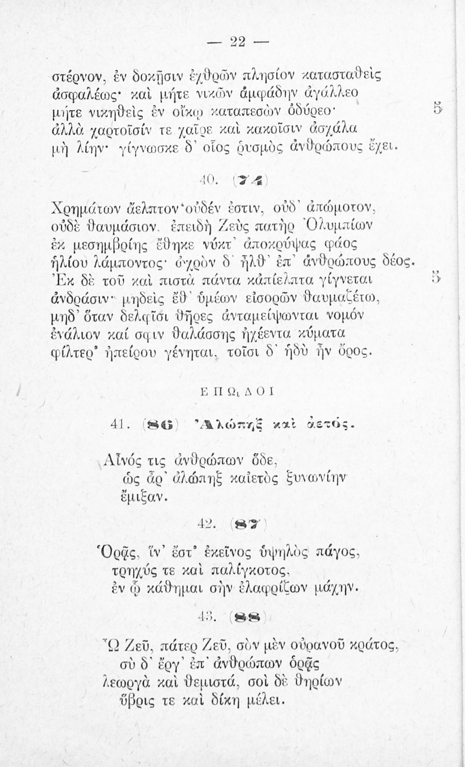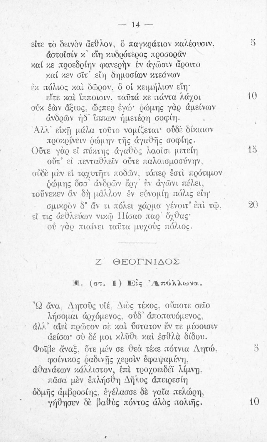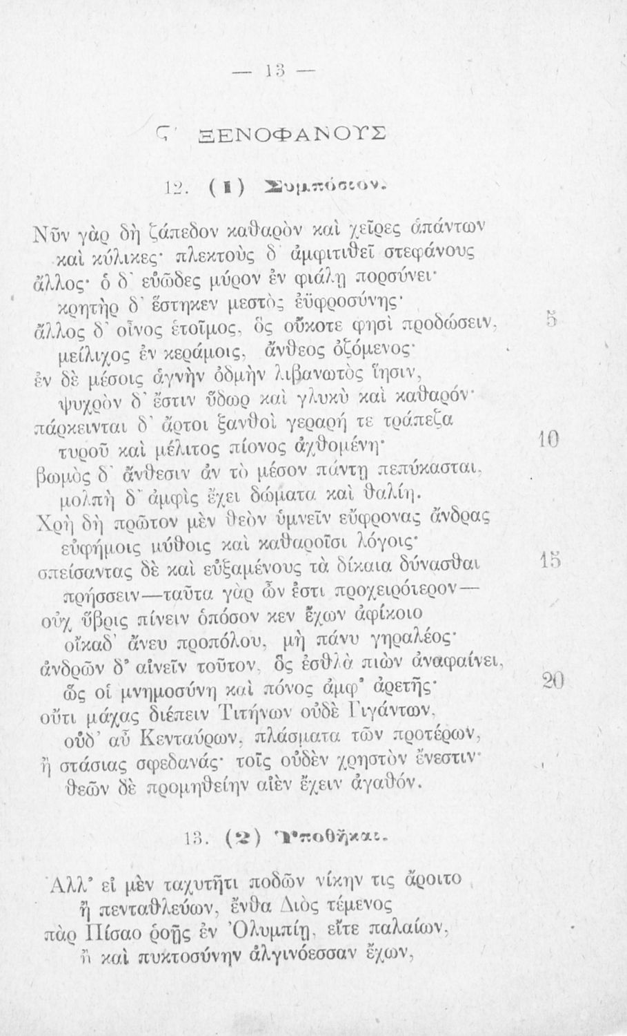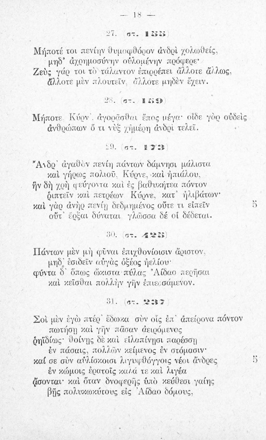 Σχολικό εγχειρίδιο Αρχαίων Ελληνικών Γ΄ Γυμνασίου που περιλαμβάνει αποσπάσματα έργων αρχαίων Ελλήνων λυρικών, πολιτικές και γνωμικές ελεγείες, ιάμβους και επιγράμματα. Περιέχει υπόμνημα με ερμηνευτικά, πραγματολογικά, γλωσσικά και γραμματικά σχόλια και μετρικό παράρτημα.