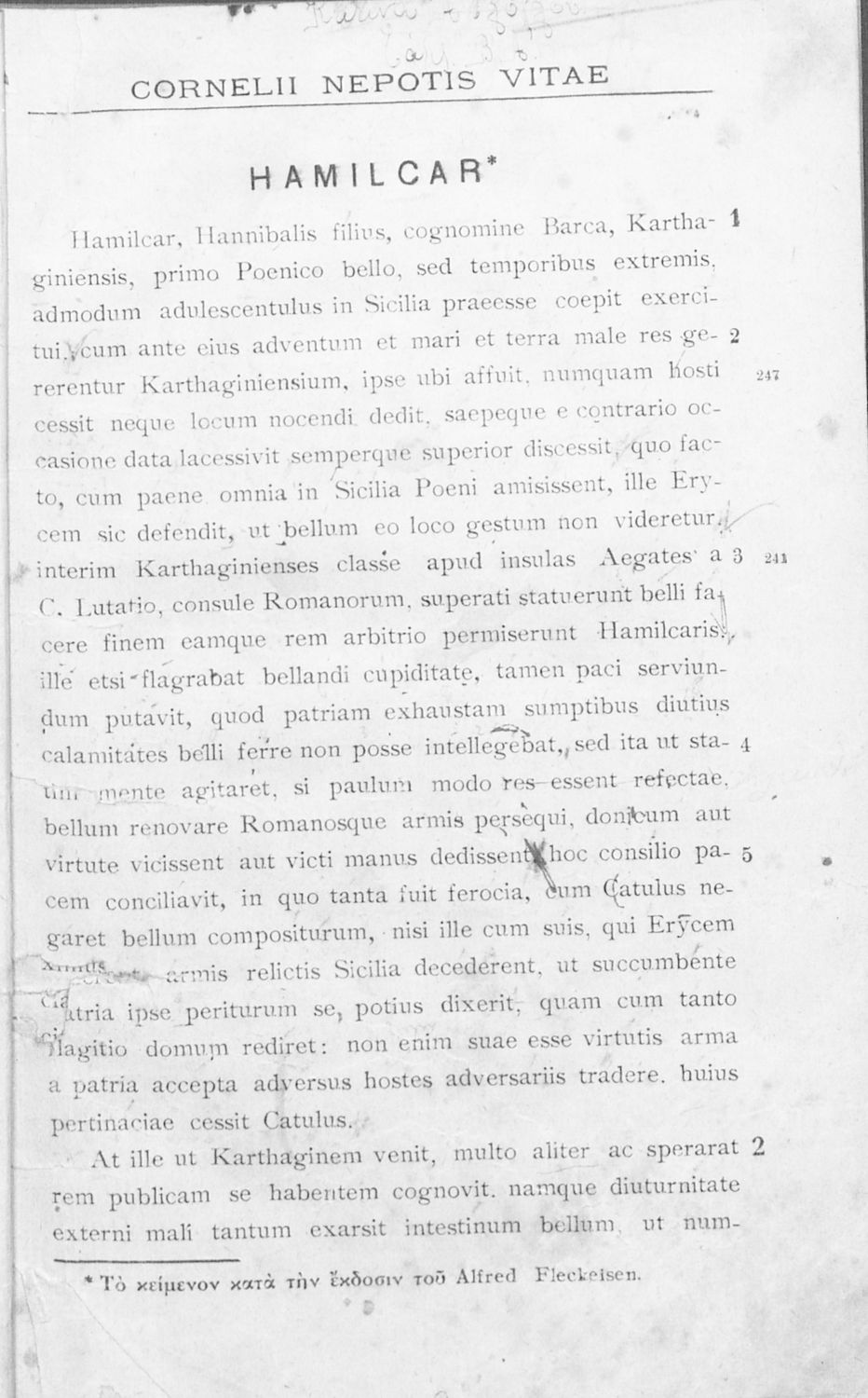 Σχολικό εγχειρίδιο Λατινικών για την Δ΄ Γυμνασίου παλαιού τύπου και την Ε΄ Γυμνασίου νέου τύπου που περιέχει σύντομο βιογραφικό σημείωμα του Νέπωτα, αποσπάσματα από τα έργα Αμίλκας, Αννίβας, Κάτων και Αττικός ...