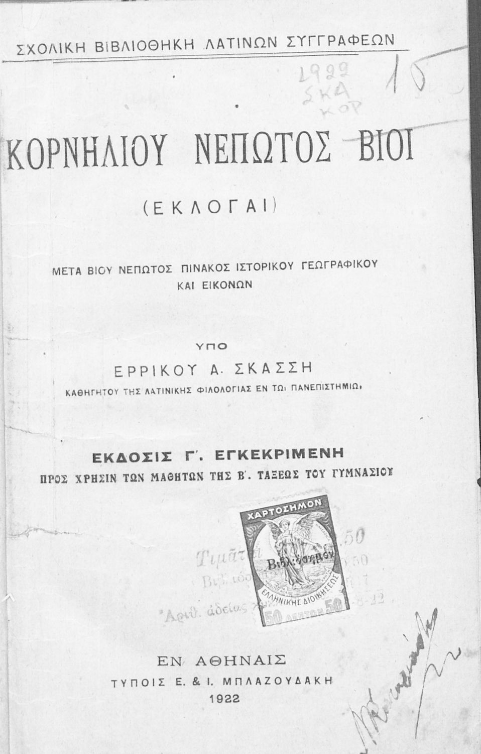 Κορνήλιος Νέπως (Cornelius Nepos), Ερρίκος Α. Σκάσσης (σχόλια/παρατηρήσεις), Κ. Σταυρόπουλος (επιμέλεια)