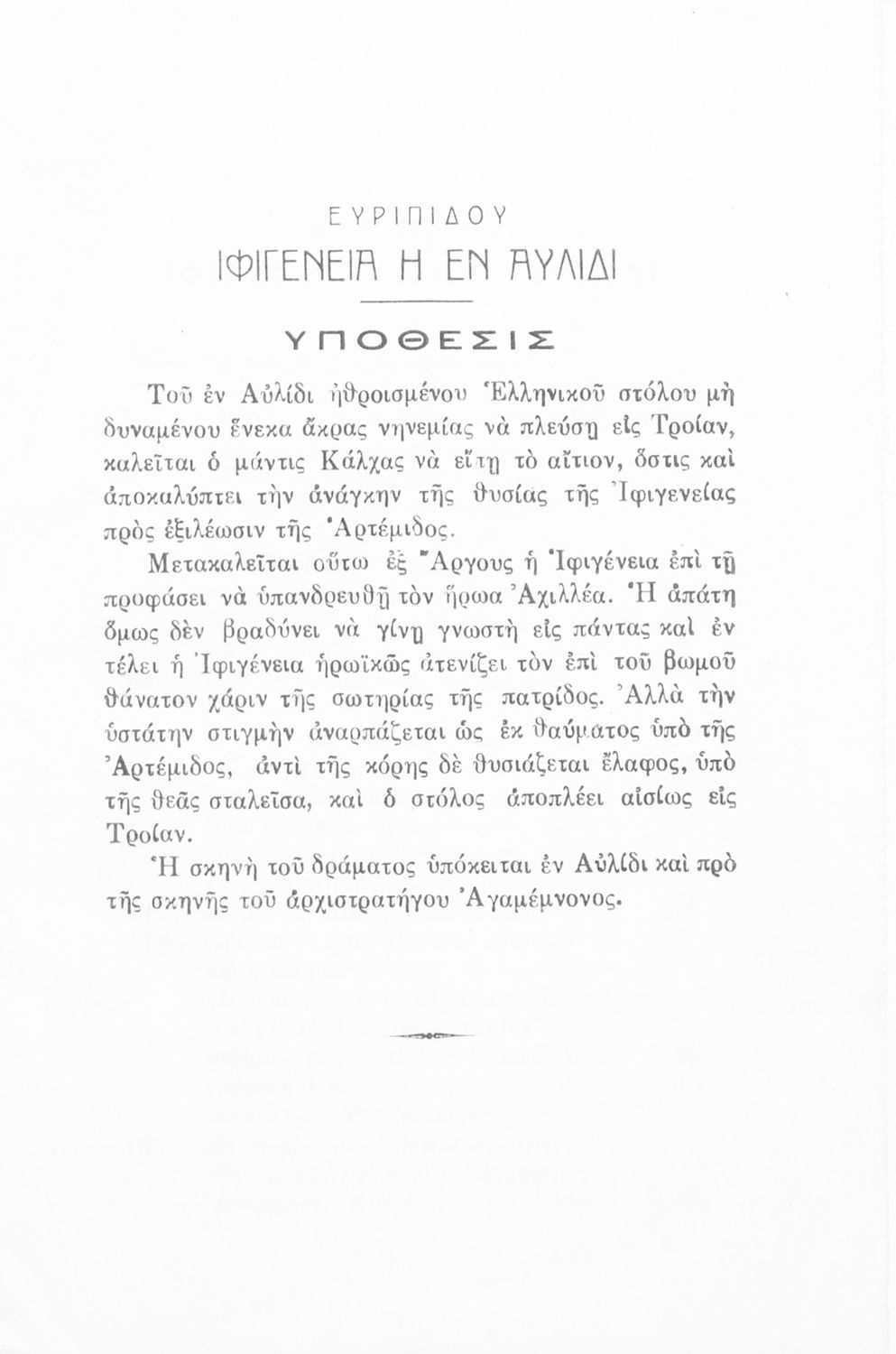Σχολικό εγχειρίδιο Αρχαίων Ελληνικών Ε΄ Γυμνασίου που περιέχει εισαγωγή στο αρχαίο δράμα και στη ζωή και το έργο του Ευριπίδη, αποσπάσματα από την Ιφιγένεια η εν Αυλίδι και ερμηνευτικά σχόλια.