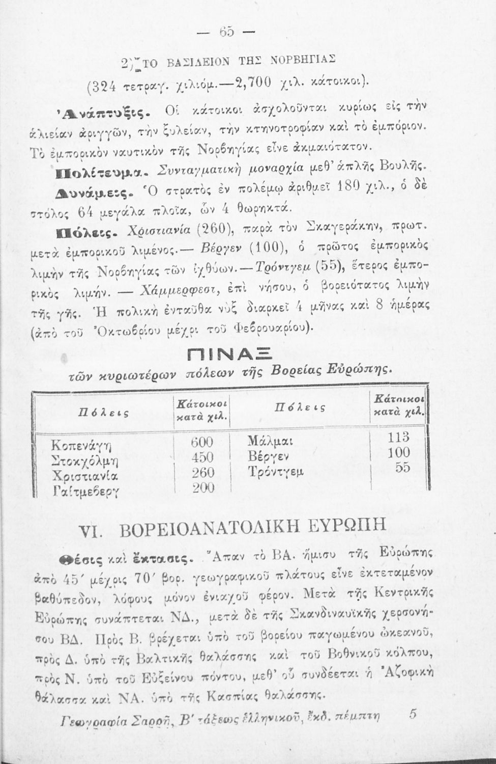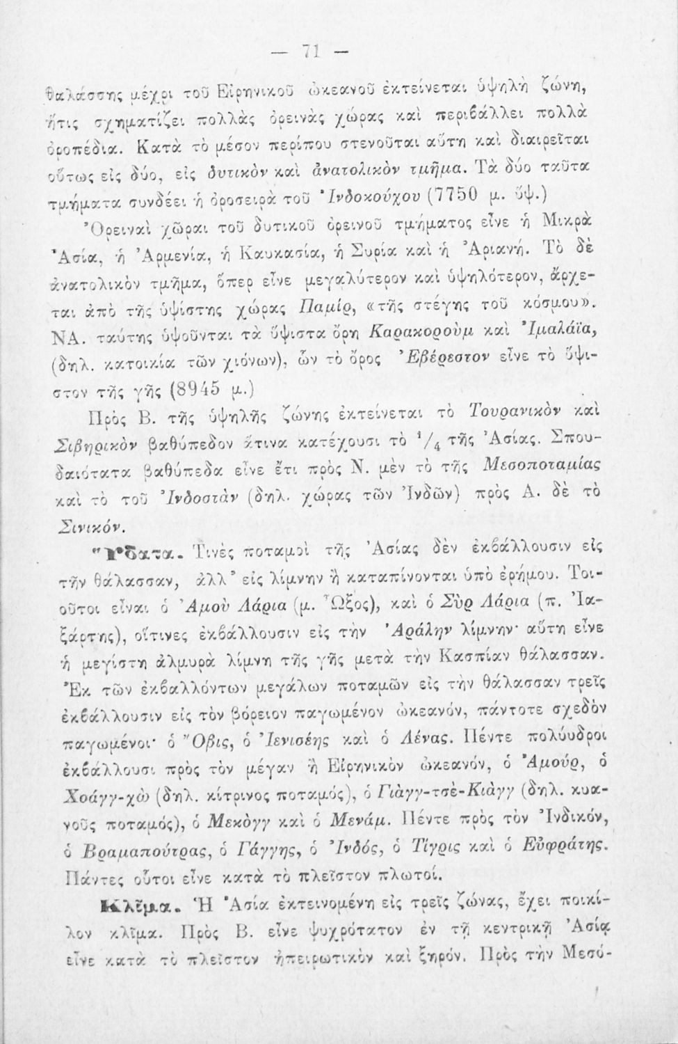 Βαθμίδα εκπαίδευσης: Δευτεροβάθμια Τάξη: Β' Ελληνικού Σχολείου Μάθημα: Γεωγραφία Γλώσσα: Καθαρεύουσα Παρουσίαση περιεχομένου: Σχολικό εγχειρίδιο Γεωγραφίας Β' Ελληνικού Σχολείου που περιλαμβάνει εισαγωγή στη φυσική και μαθηματική γεωγραφία και παρουσιάζει ενδεικτικές χώρες και περιοχές από τις πέντε ηπείρους από γεωμορφολογική, πολιτική και οικονομική σκοπιά. |