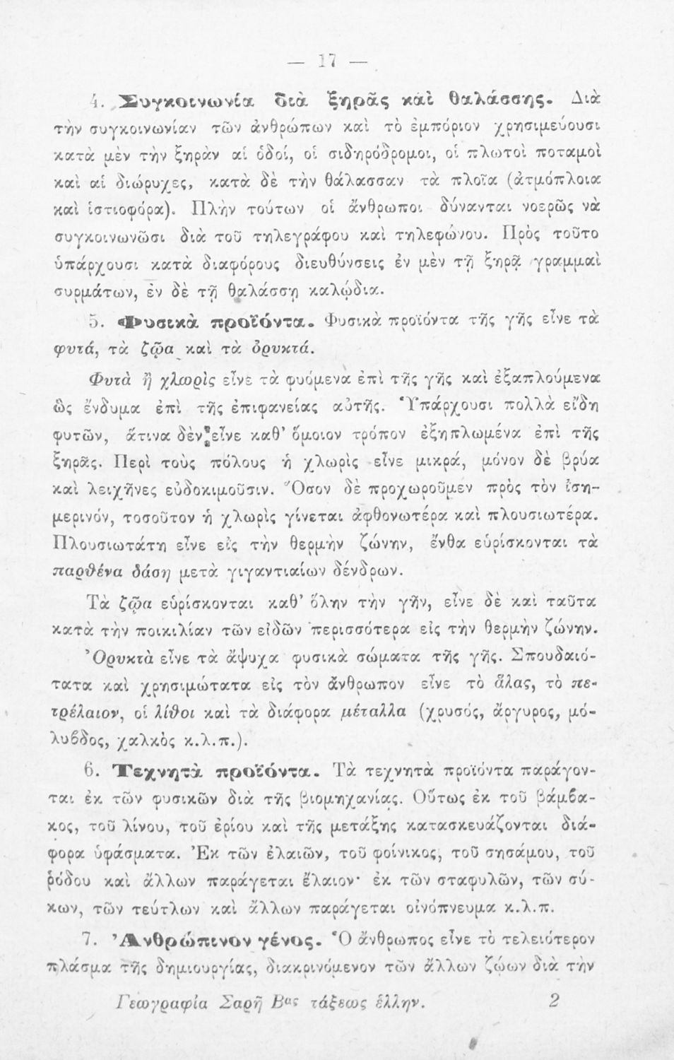 Βαθμίδα εκπαίδευσης: Δευτεροβάθμια Τάξη: Β' Ελληνικού Σχολείου Μάθημα: Γεωγραφία Γλώσσα: Καθαρεύουσα Παρουσίαση περιεχομένου: Σχολικό εγχειρίδιο Γεωγραφίας Β' Ελληνικού Σχολείου που περιλαμβάνει εισαγωγή στη φυσική και μαθηματική γεωγραφία και παρουσιάζει ενδεικτικές χώρες και περιοχές από τις πέντε ηπείρους από γεωμορφολογική, πολιτική και οικονομική σκοπιά. |