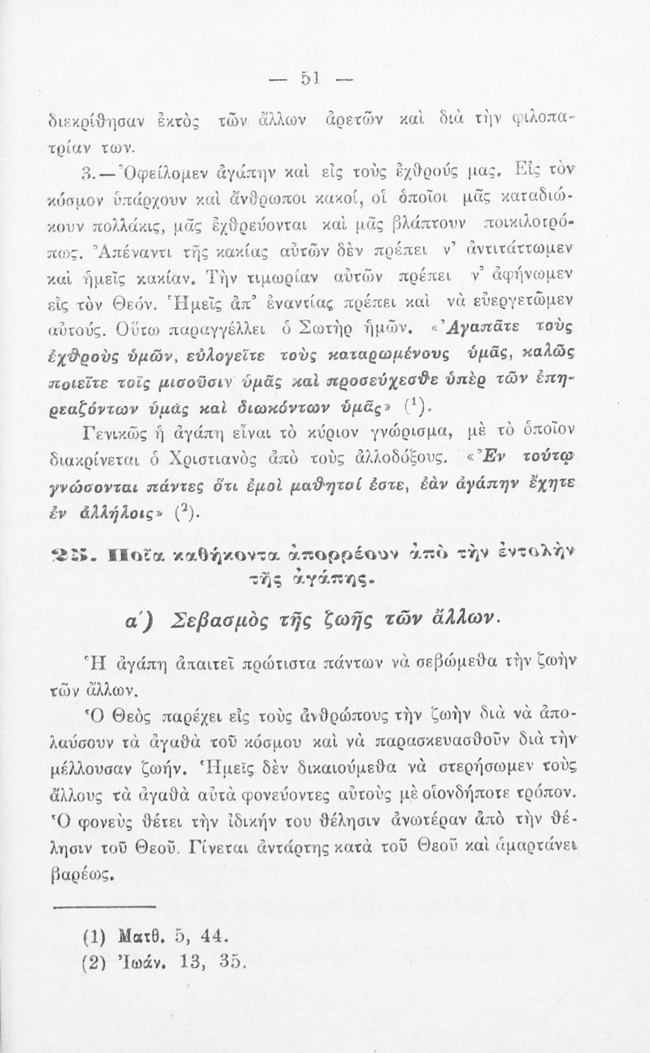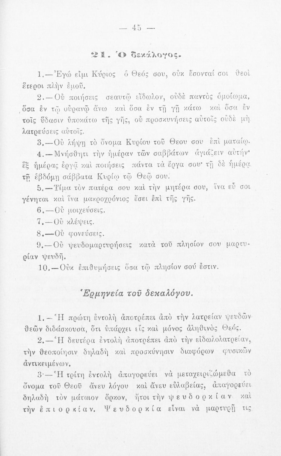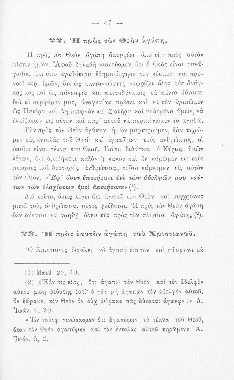 Βαθμίδα εκπαίδευσης: Δευτεροβάθμια Τάξη: Γ' Ελληνικού Σχολείου Μάθημα: Θρησκευτικά Γλώσσα: Καθαρεύουσα Παρουσίαση περιεχομένου: Σχολικό εγχειρίδιο Θρησκευτικών Γ' Ελληνικού Σχολείου που περιλαμβάνει εισαγωγή στη χριστιανική κατήχηση και τα δόγματά της και πραγματεύεται δογματικά και ηθικά ζητήματα της ορθόδοξης παράδοσης. |