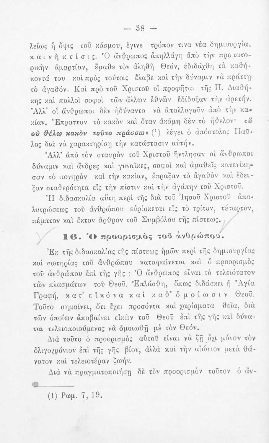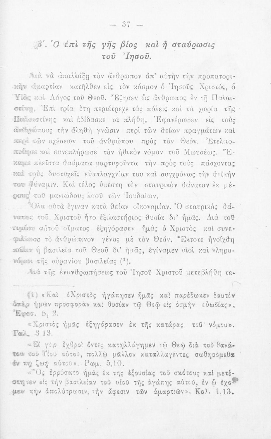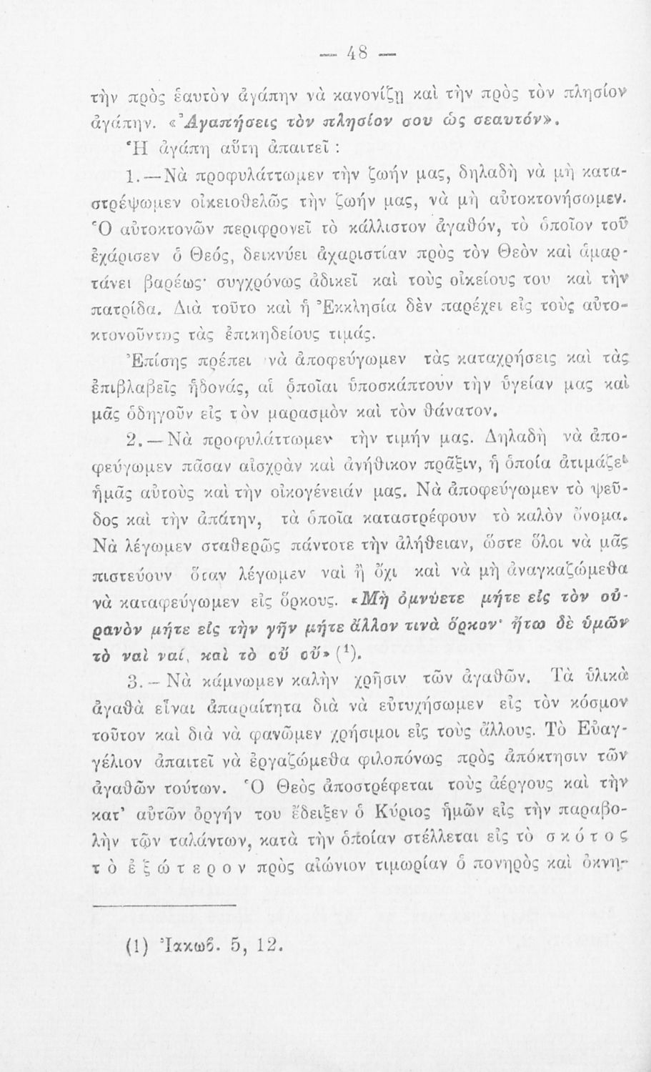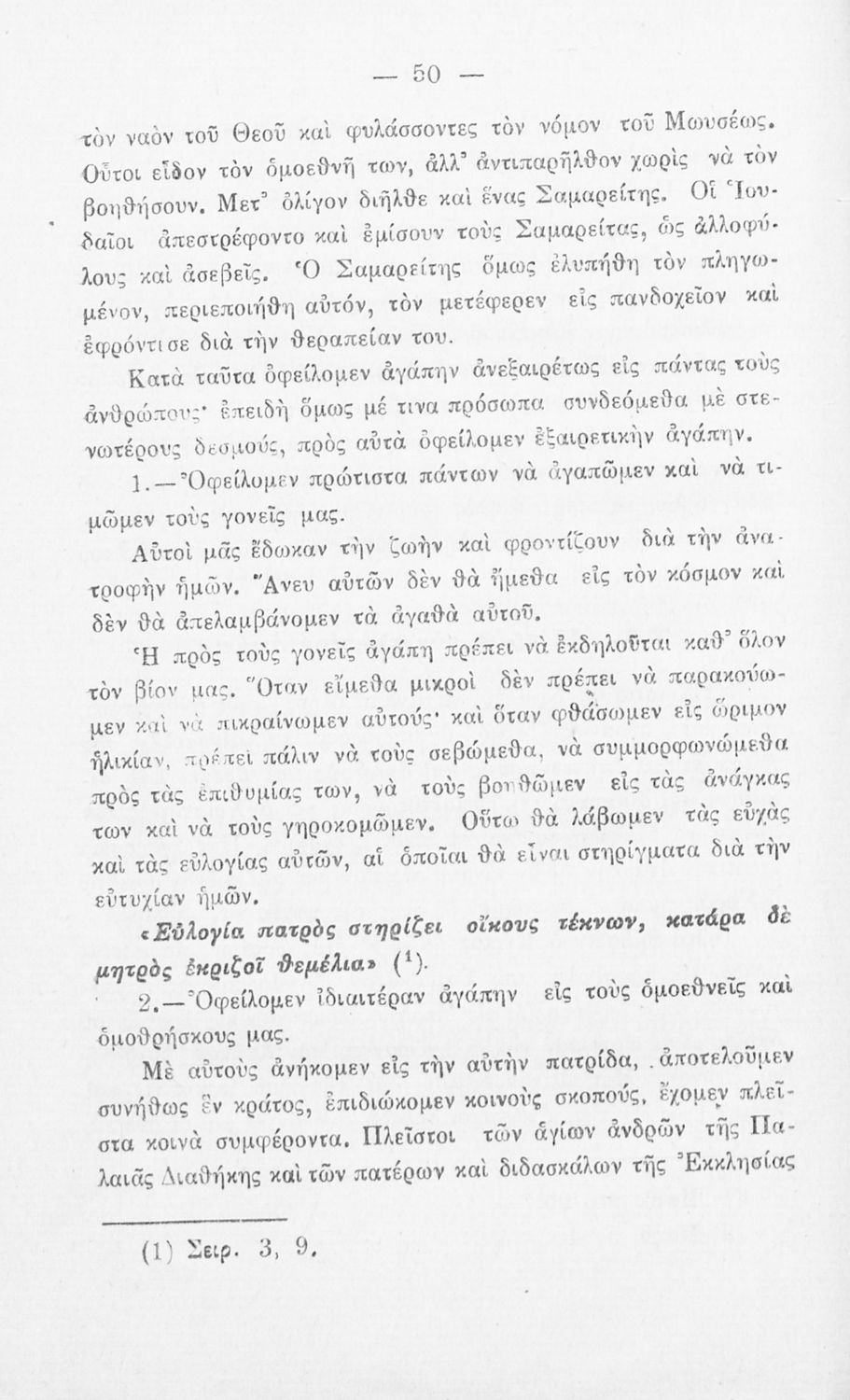 Βαθμίδα εκπαίδευσης: Δευτεροβάθμια Τάξη: Γ' Ελληνικού Σχολείου Μάθημα: Θρησκευτικά Γλώσσα: Καθαρεύουσα Παρουσίαση περιεχομένου: Σχολικό εγχειρίδιο Θρησκευτικών Γ' Ελληνικού Σχολείου που περιλαμβάνει εισαγωγή στη χριστιανική κατήχηση και τα δόγματά της και πραγματεύεται δογματικά και ηθικά ζητήματα της ορθόδοξης παράδοσης. |