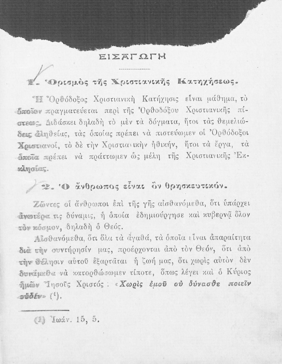 Σχολικό εγχειρίδιο Θρησκευτικών Γ' Ελληνικού Σχολείου που περιλαμβάνει εισαγωγή στη χριστιανική κατήχηση και τα δόγματά της και πραγματεύεται δογματικά και ηθικά ζητήματα της ορθόδοξης παράδοσης.