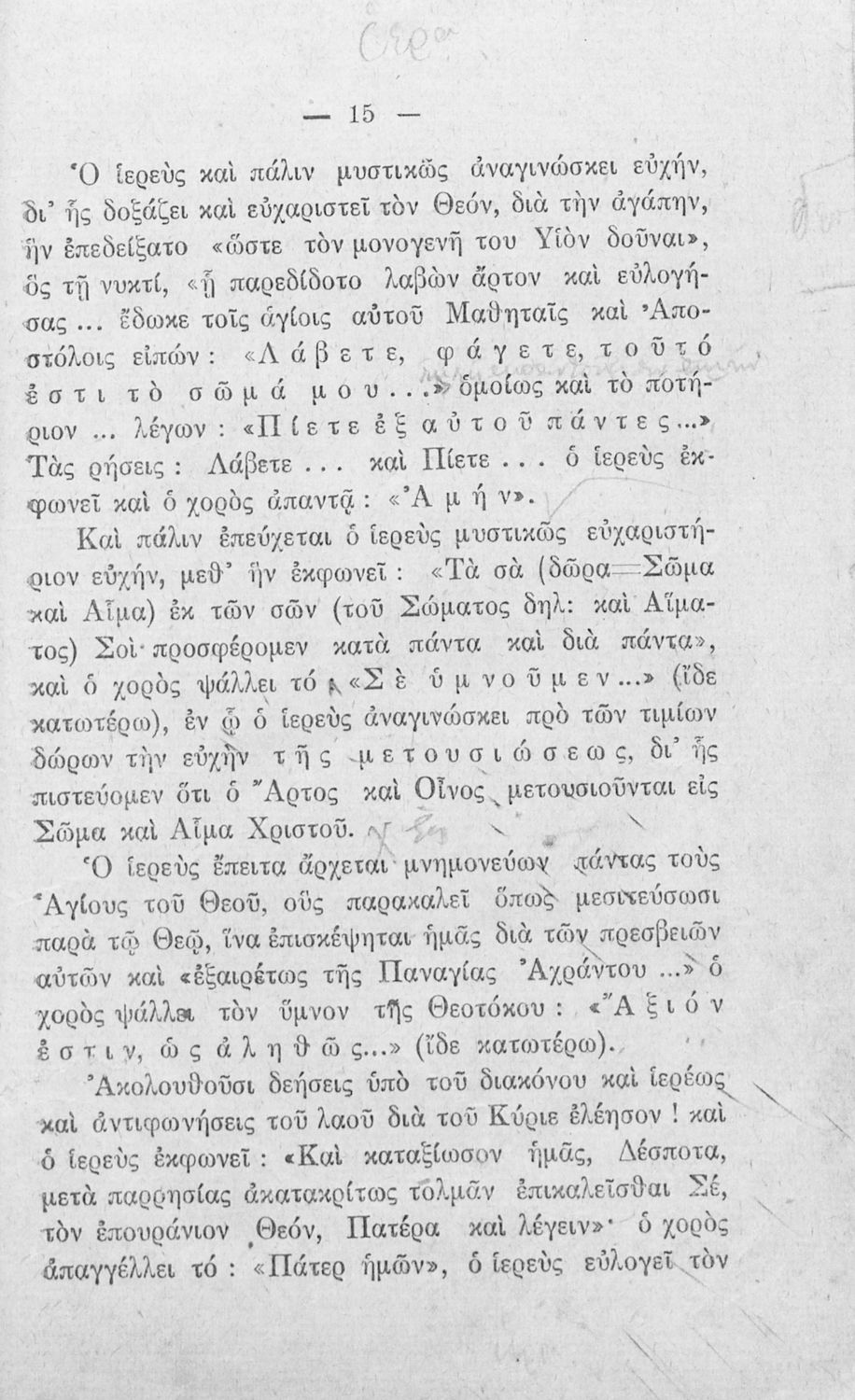 Σχολικό εγχειρίδιο Θρησκευτικών Β΄ Γυμνασίου που περιλαμβάνει εισαγωγή στη θεία λειτουργία, λειτουργικά άσματα και ερμηνευτικές σημειώσεις.