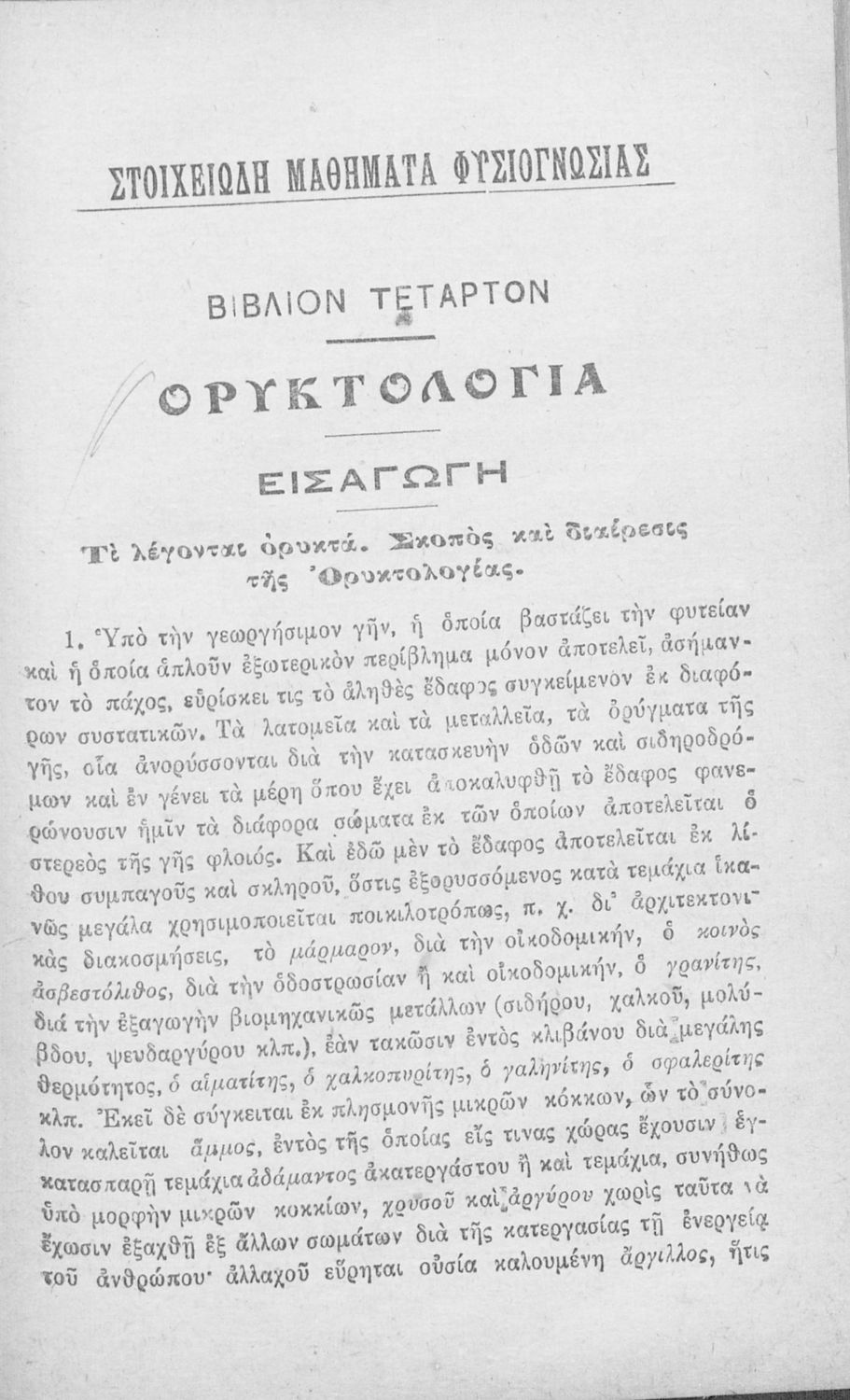 Τίτλος: Μεθοδικόν εγχειρίδιον Φυσιογνωσίας, περιλαμβάνον στοιχεία Ανθρωπολογίας, Ζωολογίας, Φυτολογίας, Ορυκτολογίας και Γεωλογίας, δια τους μαθητάς και μαθήτριας των Εμπορικών Σχολών