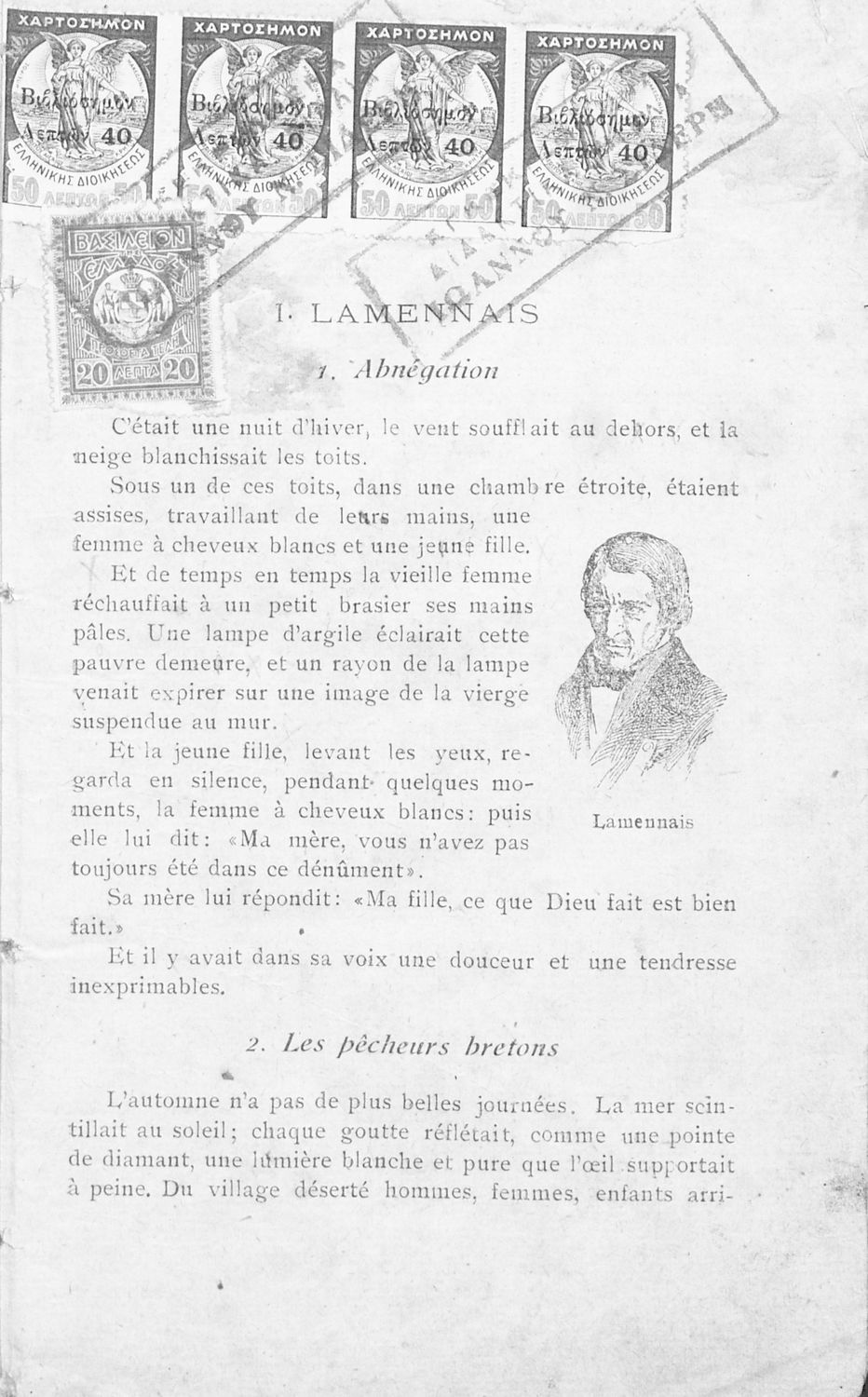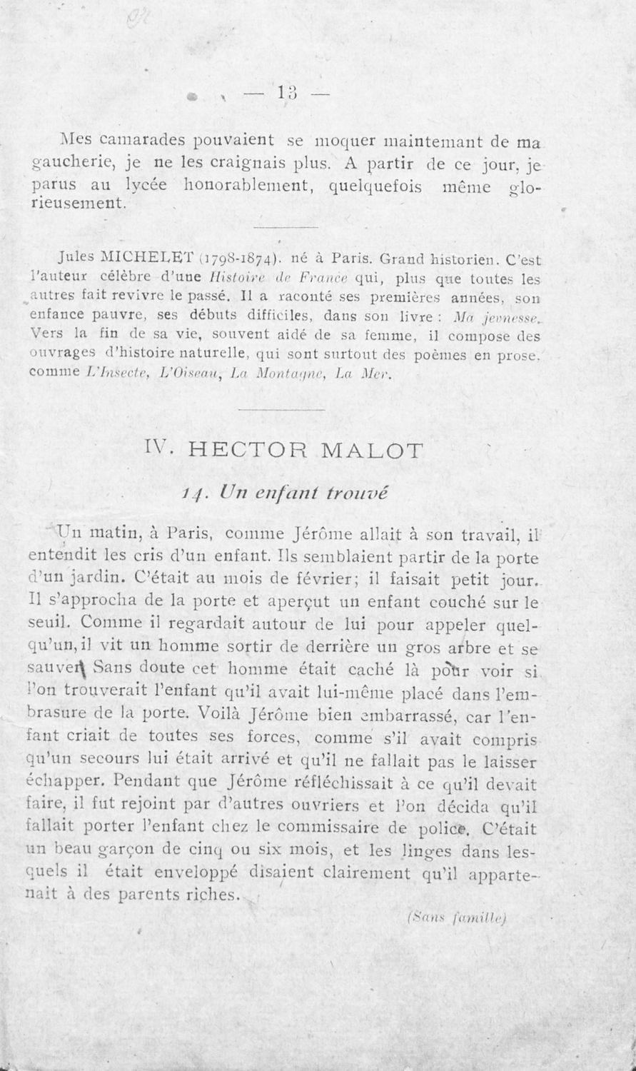 Σχολικό εγχειρίδιο Γαλλικών Α΄ Γυμνασίου το οποίο περιέχει σειρά αποσπασμάτων από κλασσικά έργα Γάλλων συγγραφέων και λεξιλόγιο.