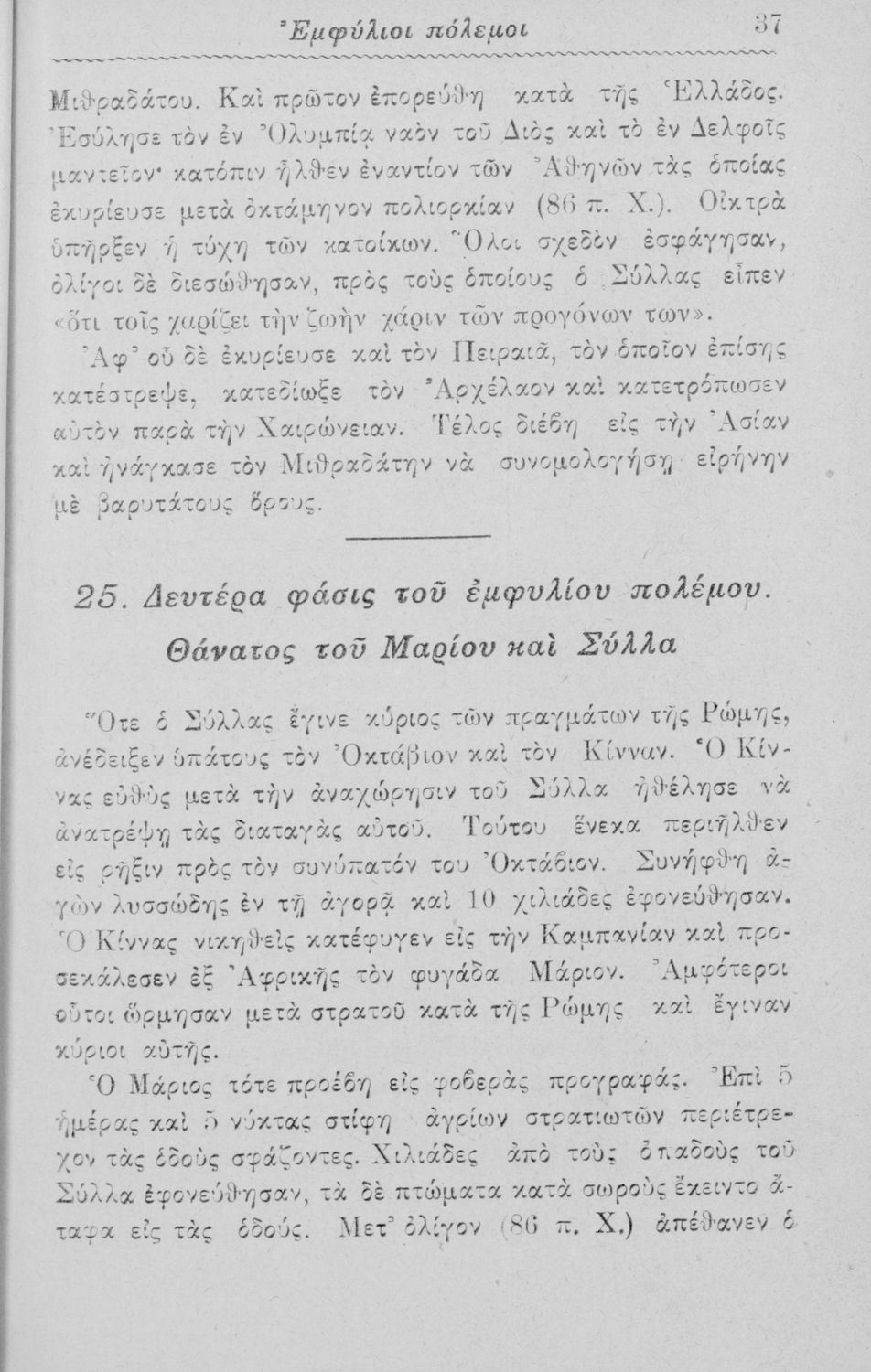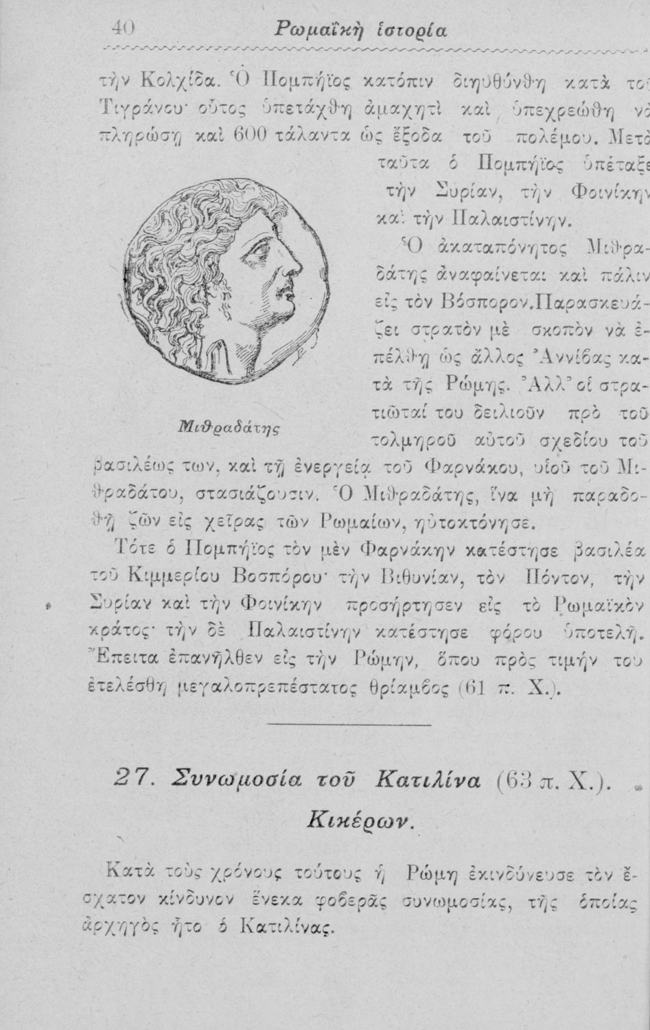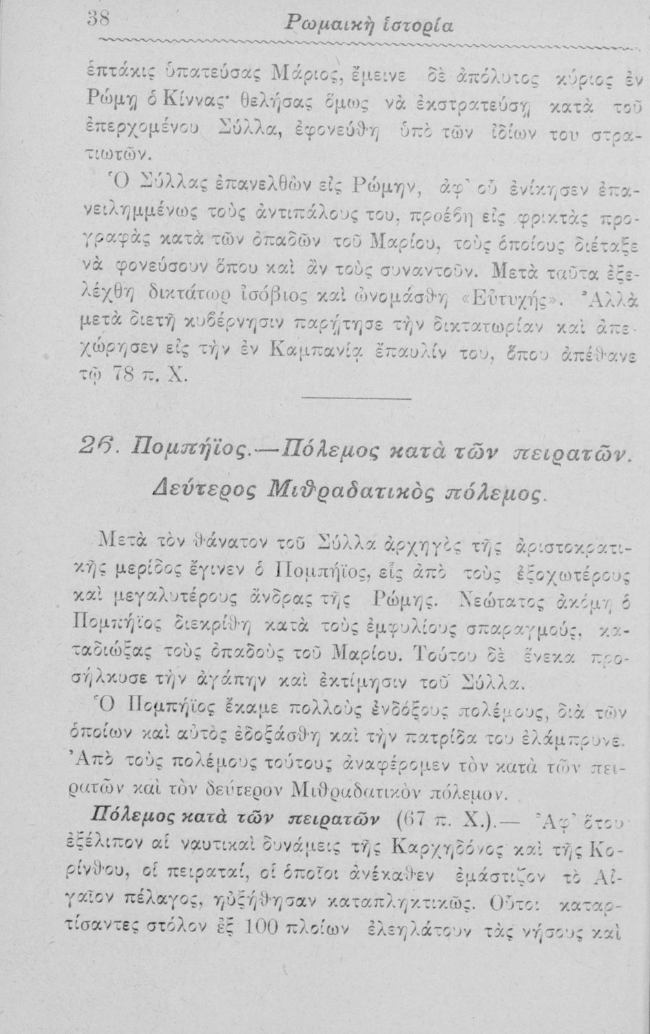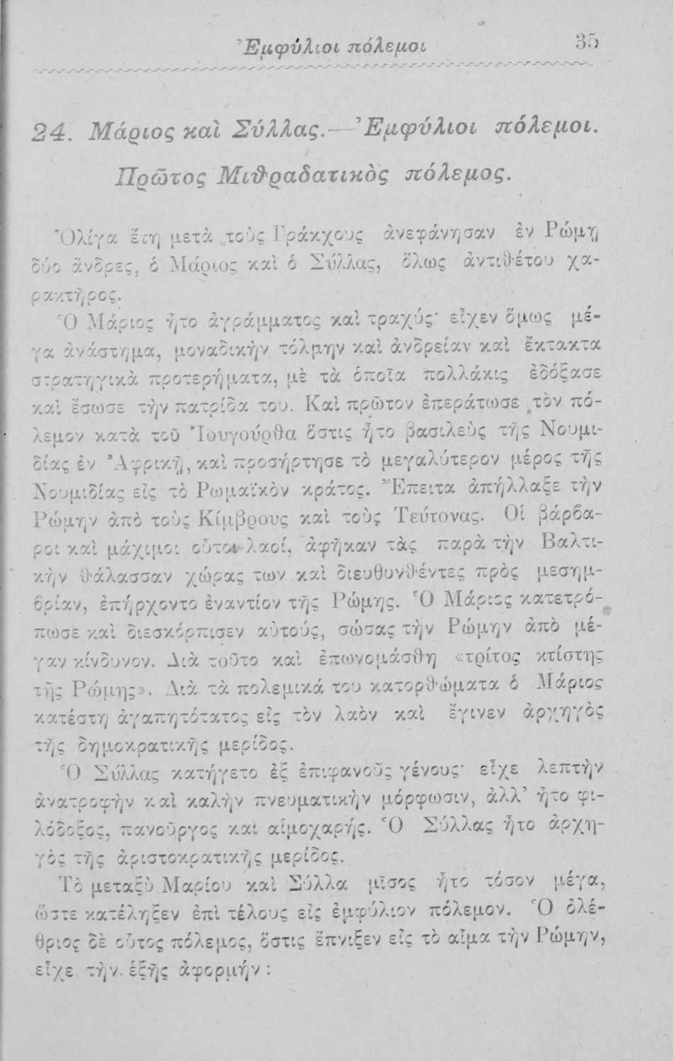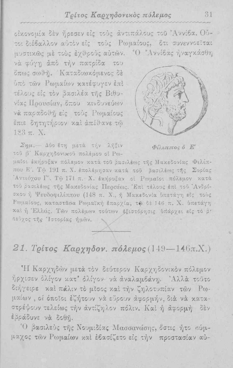 Βαθμίδα εκπαίδευσης: Δευτεροβάθμια Τάξη: Ε' Αστικού Σχολείου Μάθημα: Ιστορία Γλώσσα: Απλή καθαρεύουσα Παρουσίαση περιεχομένου: Σχολικό εγχειρίδιο Ιστορίας Ε΄ Αστικού Σχολείου που καλύπτει την περίοδο από την ίδρυση της Ρώμης ως το σχίσμα των δύο εκκλησιών. Περιέχει και αναφορά στο κράτος των Αράβων. |