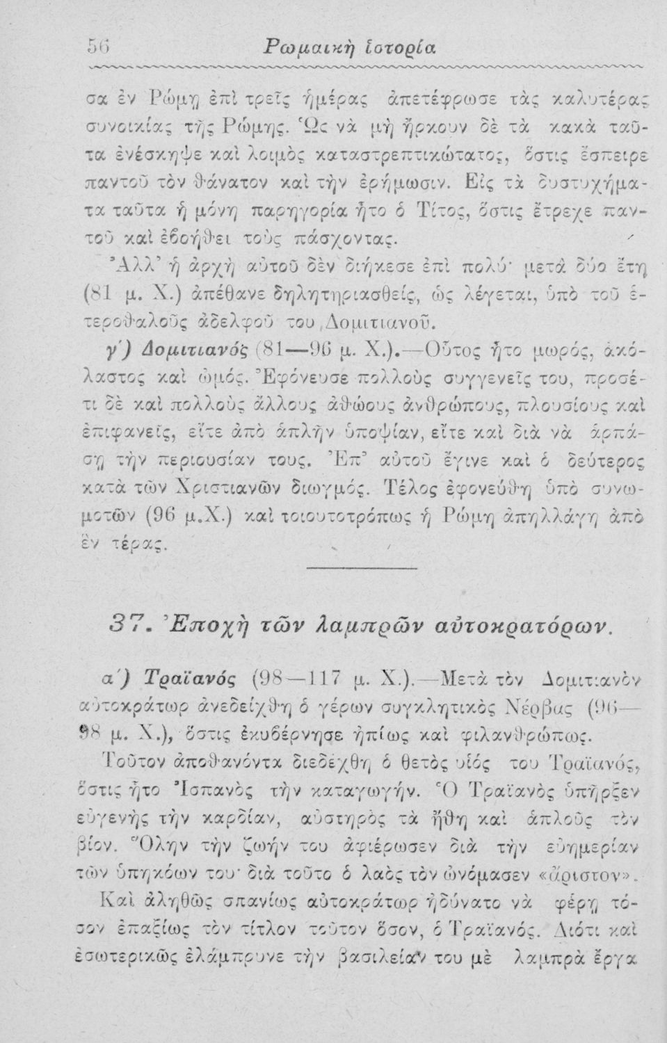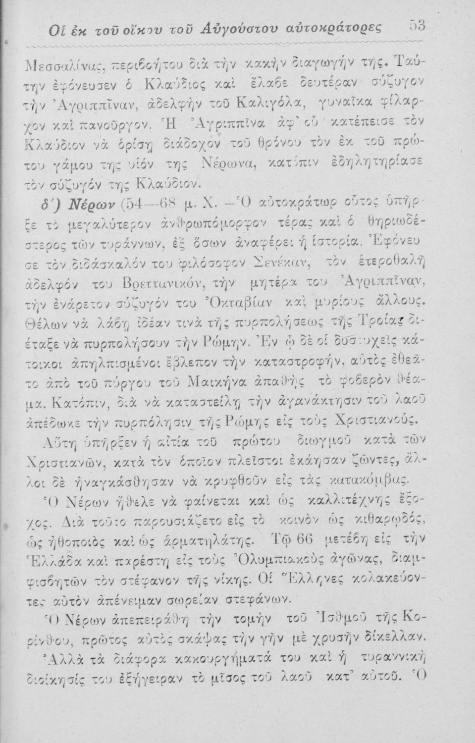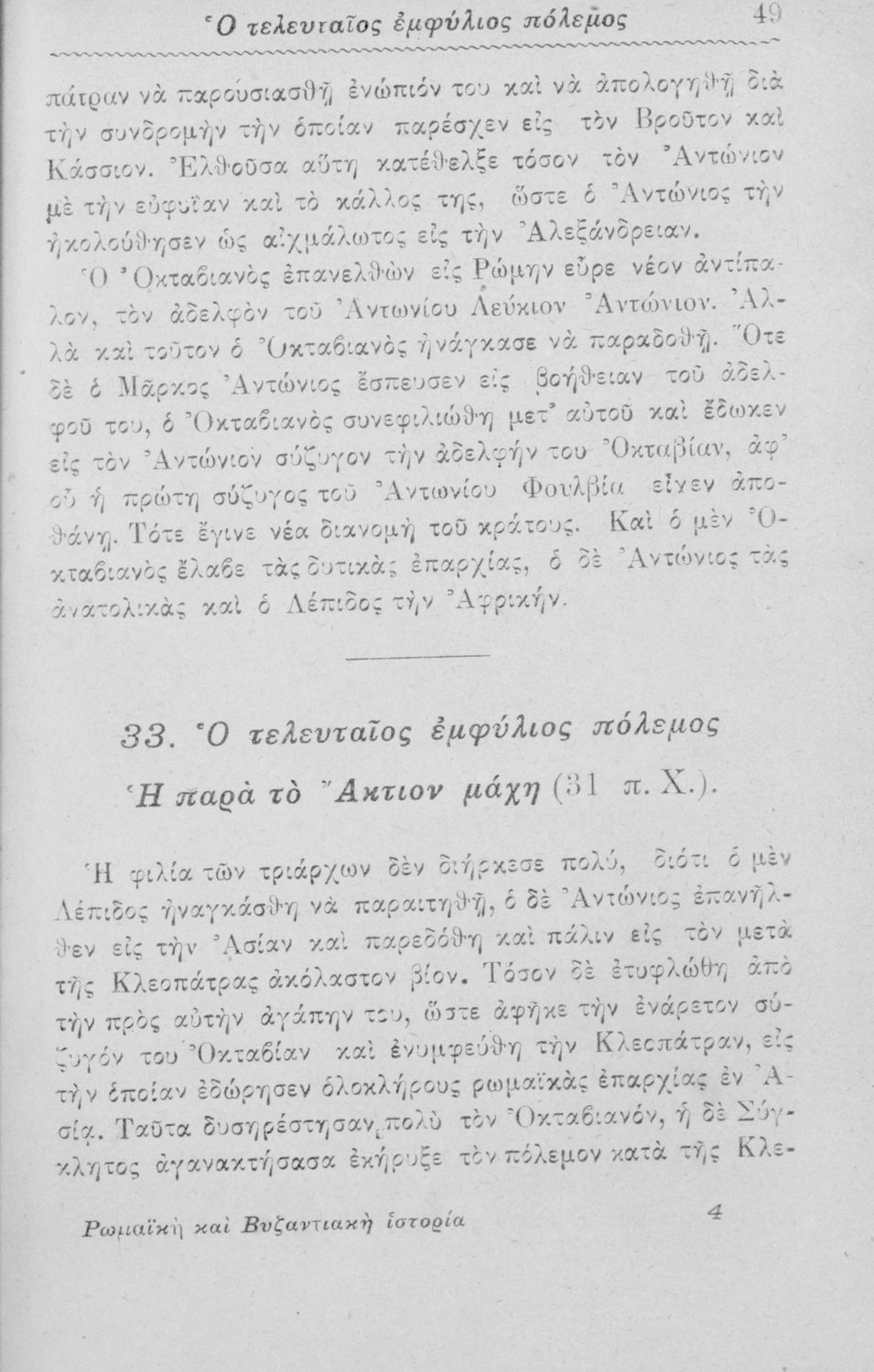 Βαθμίδα εκπαίδευσης: Δευτεροβάθμια Τάξη: Ε' Αστικού Σχολείου Μάθημα: Ιστορία Γλώσσα: Απλή καθαρεύουσα Παρουσίαση περιεχομένου: Σχολικό εγχειρίδιο Ιστορίας Ε΄ Αστικού Σχολείου που καλύπτει την περίοδο από την ίδρυση της Ρώμης ως το σχίσμα των δύο εκκλησιών. Περιέχει και αναφορά στο κράτος των Αράβων. |