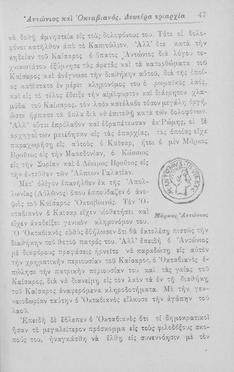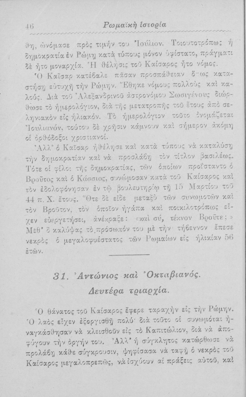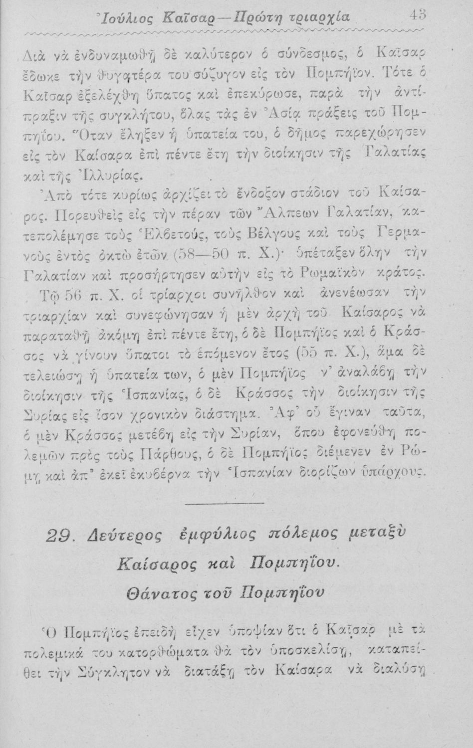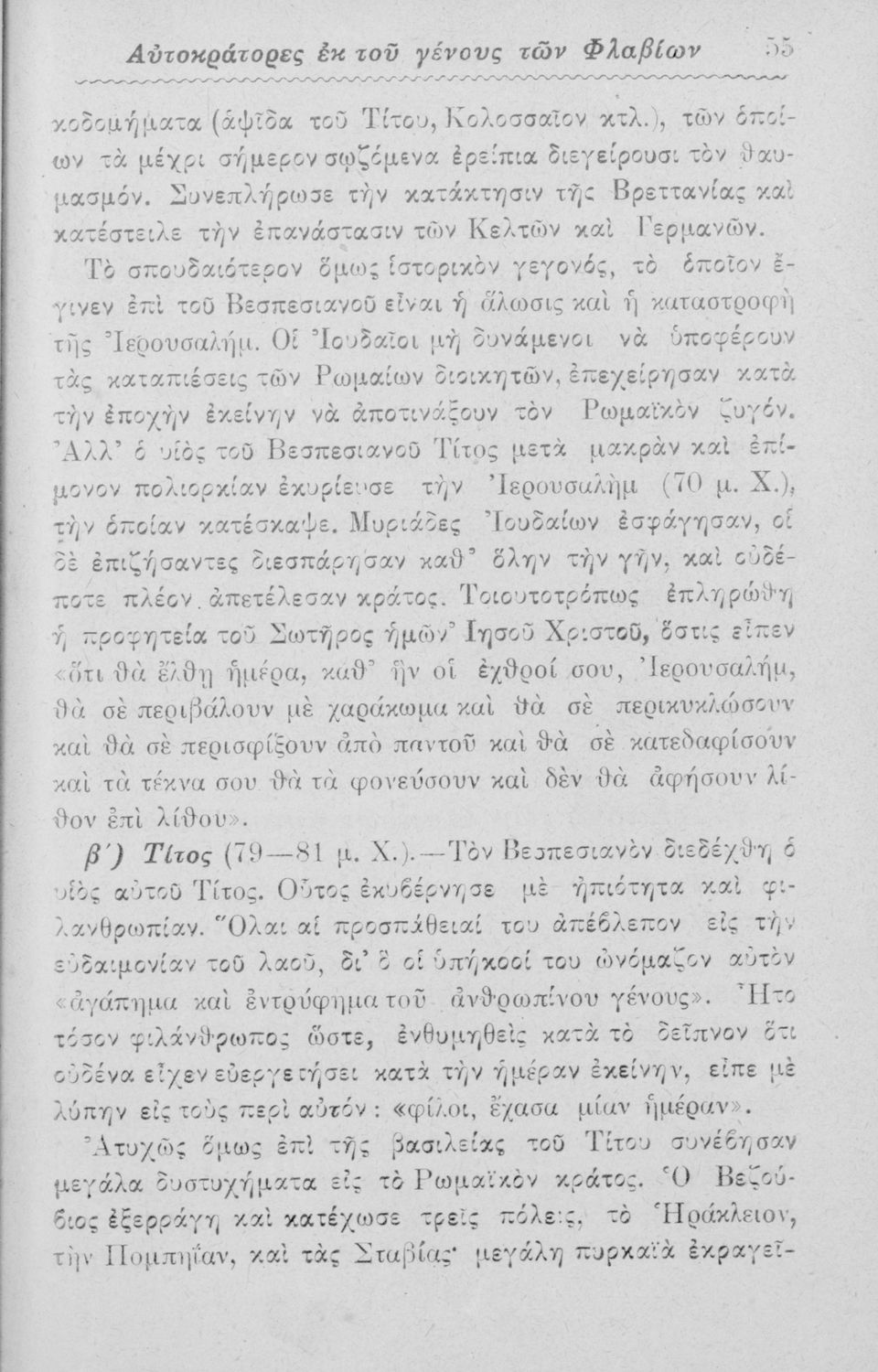 Βαθμίδα εκπαίδευσης: Δευτεροβάθμια Τάξη: Ε' Αστικού Σχολείου Μάθημα: Ιστορία Γλώσσα: Απλή καθαρεύουσα Παρουσίαση περιεχομένου: Σχολικό εγχειρίδιο Ιστορίας Ε΄ Αστικού Σχολείου που καλύπτει την περίοδο από την ίδρυση της Ρώμης ως το σχίσμα των δύο εκκλησιών. Περιέχει και αναφορά στο κράτος των Αράβων. |