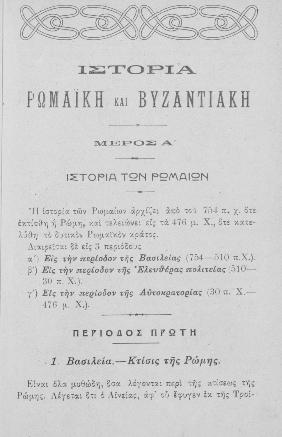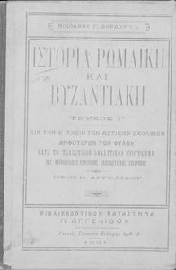 Τίτλος: Ιστορία ρωμαϊκή και βυζαντιακή δια την Ε΄ τάξιν των Αστικών Σχολείων αμφοτέρων των φύλων, τεύχος Γ΄ κατά το τελευταίον αναλυτικόν πρόγραμμα της πατριαρχικής κεντρικής εκπαιδευτικής επιτροπής