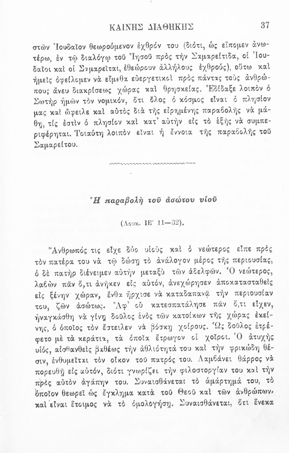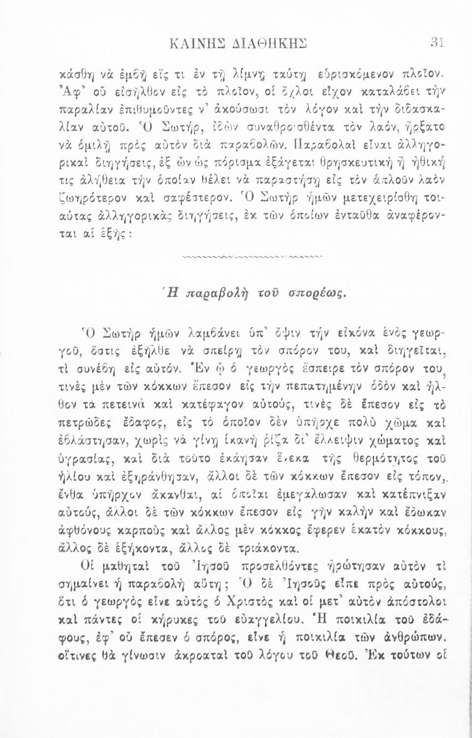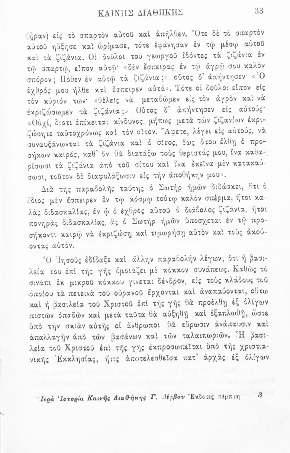 Σχολικό εγχειρίδιο Θρησκευτικών για τα Ελληνικά Σχολεία και τα Παρθεναγωγεία που αποτελεί μια εξιστόρηση της Καινής Διαθήκης από την γέννηση του Ιησού Χριστού ως το έργο των Αποστόλων