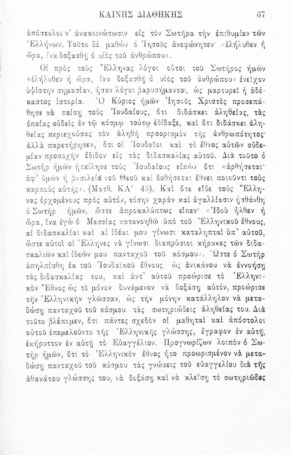 Σχολικό εγχειρίδιο Θρησκευτικών για τα Ελληνικά Σχολεία και τα Παρθεναγωγεία που αποτελεί μια εξιστόρηση της Καινής Διαθήκης από την γέννηση του Ιησού Χριστού ως το έργο των Αποστόλων