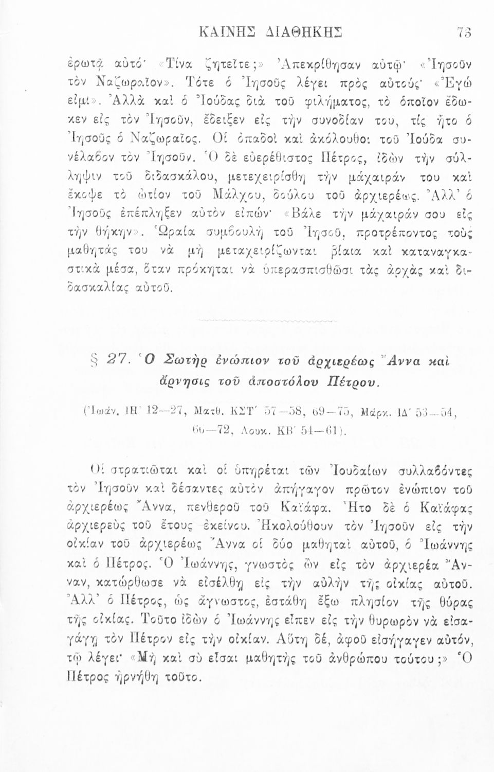 Σχολικό εγχειρίδιο Θρησκευτικών για τα Ελληνικά Σχολεία και τα Παρθεναγωγεία που περιλαμβάνει την ιστορία της Καινής Διαθήκης από τον Ευαγγελισμό της Θεοτόκου μέχρι την ανάληψη του Ιησού Χριστού