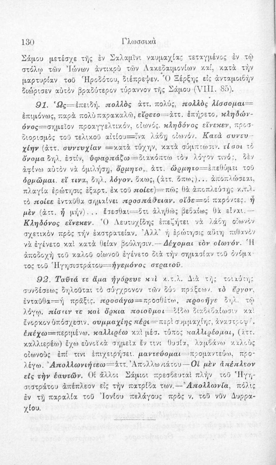 Κωδικός αναγνώρισης: 02-01958 Τίτλος: Ηροδότου Εκλογαί εκ των διδασκομένων εν τη Α΄ τάξει του γυμνασίου Συγγραφέας: Ηρόδοτος, Σπυρίδων Στουραΐτης (σχόλια) Μέγεθος και υπόστρωμα: Σχολικό εγχειρίδιο, σκληρό εξώφυλλο, 137 σελίδες. Εικόνες (ασπρόμαυρες), σκίτσα (ασπρόμαυρα), σχεδιαγράμματα (ασπρόμαυρα), χάρτες (ασπρόμαυροι). |