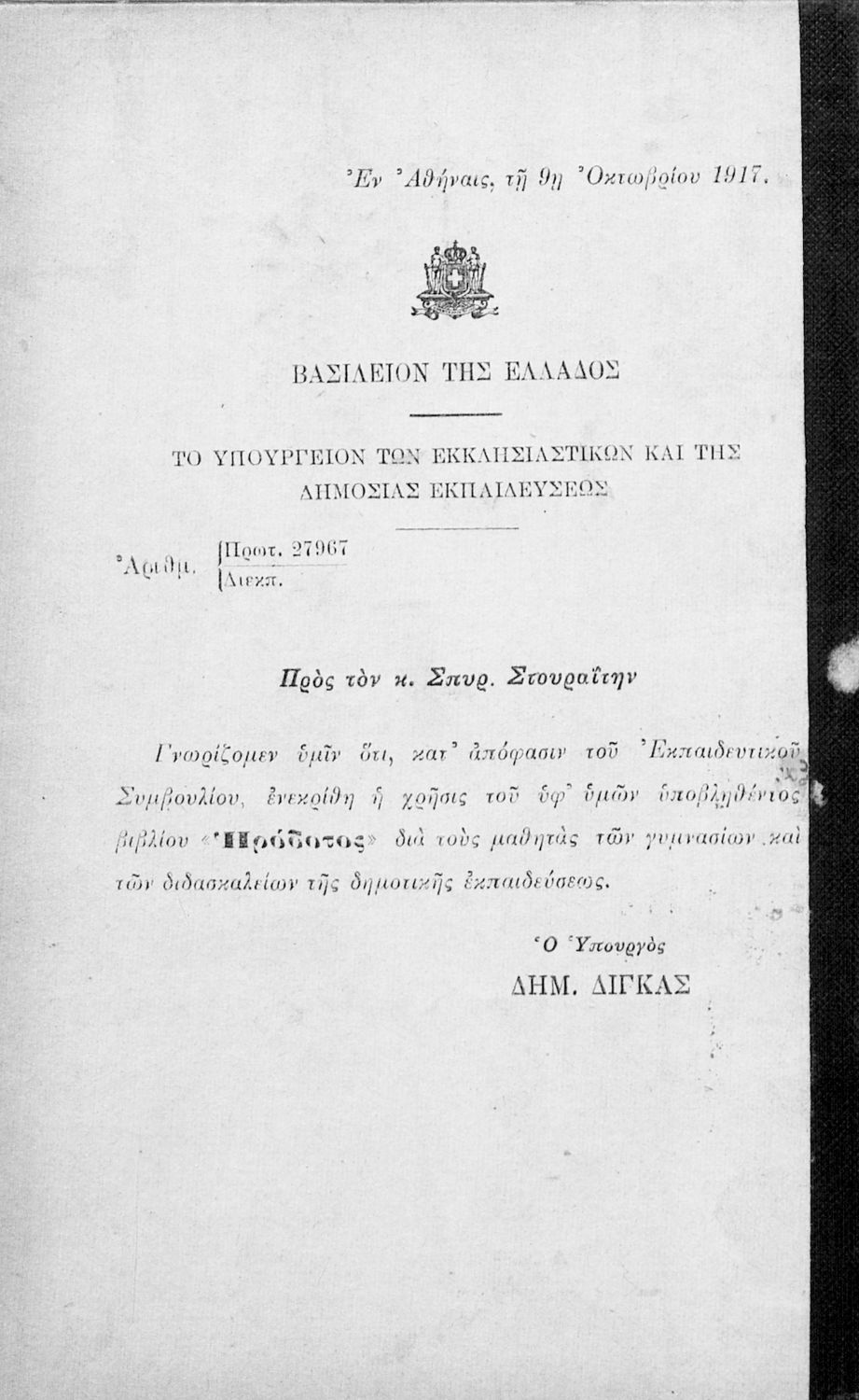 Υπουργική απόφαση / Σύμβαση: 27967/9-10-1917