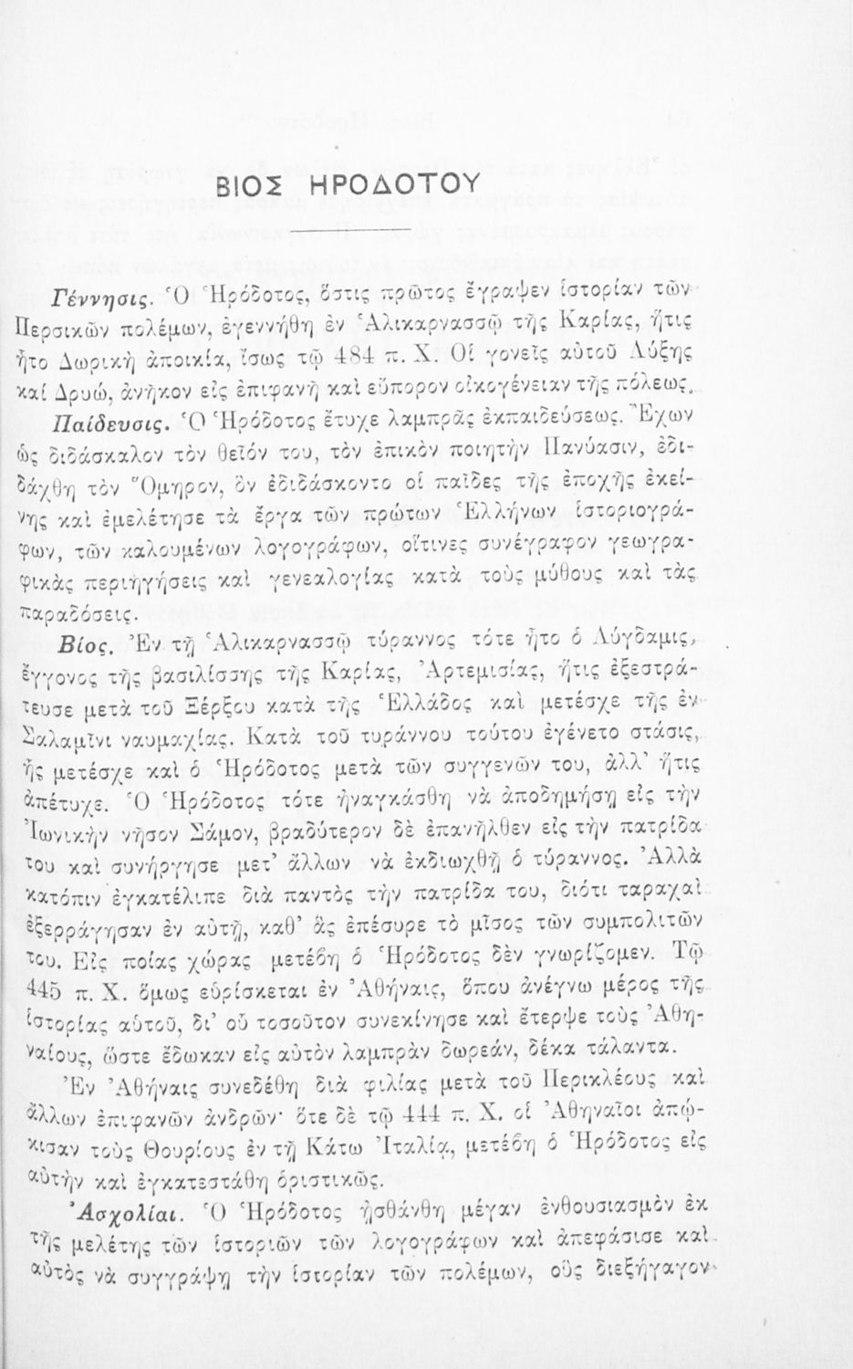 Σχολικό εγχειρίδιο Αρχαίων Ελληνικών Α' Γυμνασίου που περιλαμβάνει αποσπάσματα από την Ιστορία του Ηρόδοτου, εισαγωγή στη ζωή και το έργο του, παρουσίαση της διαλέκτου του, και γλωσσικές και πραγματολογικές σημειώσεις.