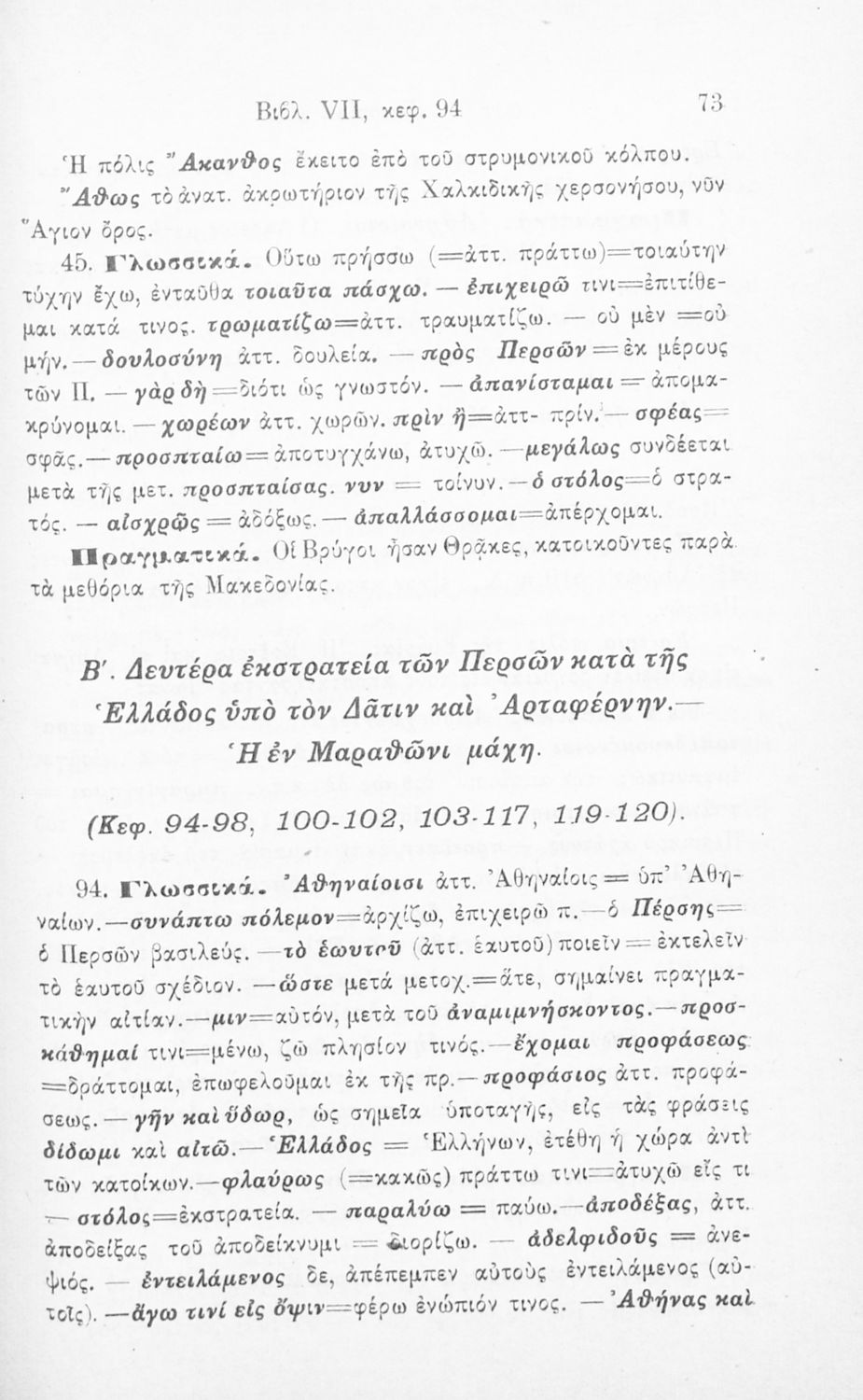 LDR 01421 2200217 4500 035 ## _a02-01958 040 ## _aΕλληνικό Λογοτεχνικό και Ιστορικό Αρχείο 041 ## _ael 100 ## _aΗρόδοτος _aΣπυρίδων Στουραΐτης (σχόλια) 110 ## _a1921 ΗΡΟ 245 0# _aΗροδότου Εκλογαί εκ των διδασκομένων εν τη Α΄ τάξει του γυμνασίου 250 ## _a3η Έκδοση 260 ## _aΑθήνα _bΤυπογραφείο Π.Α. Πετράκου _c1921 300 ## _a137 _bΕικόνες (ασπρόμαυρες), Σκίτσα (ασπρόμαυρα), Σχεδιαγράμματα (ασπρόμαυρα), Χάρτες (ασπρόμαυροι) 520 ## _aΣχολικό εγχειρίδιο Αρχαίων Ελληνικών Α' Γυμνασίου που περιλαμβάνει αποσπάσματα από την Ιστορία του Ηρόδοτου, εισαγωγή στη ζωή και το έργο του, παρουσίαση της διαλέκτου του, και γλωσσικές και πραγματολογικές σημειώσεις. 521 ## _aΑ' Γυμνασίου 522 ## _aΕλλάδα 546 ## _aΚαθαρεύουσα 563 ## _aΣκληρό Εξώφυλλο 583 ## _a27967/9-10-1917 650 #4 _aΑρταφέρνης _aΔάτης _aΘερμοπύλες _aΜαρδόνιος