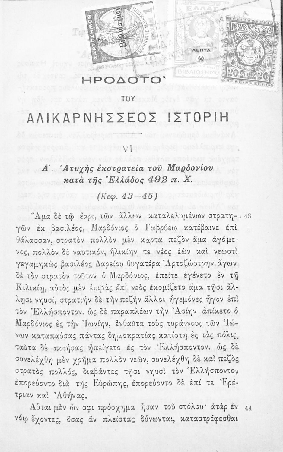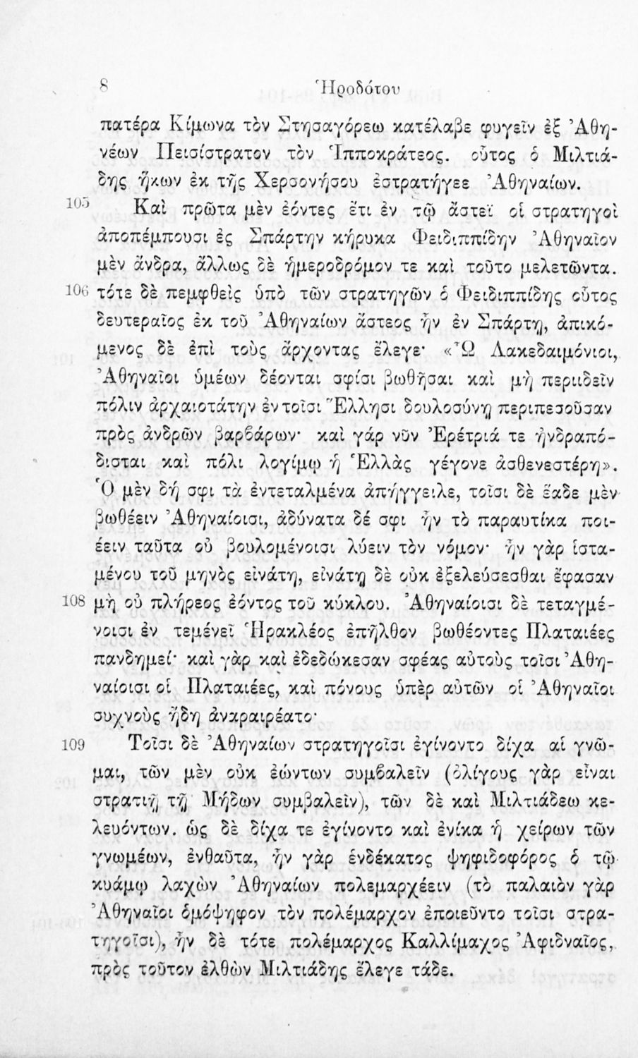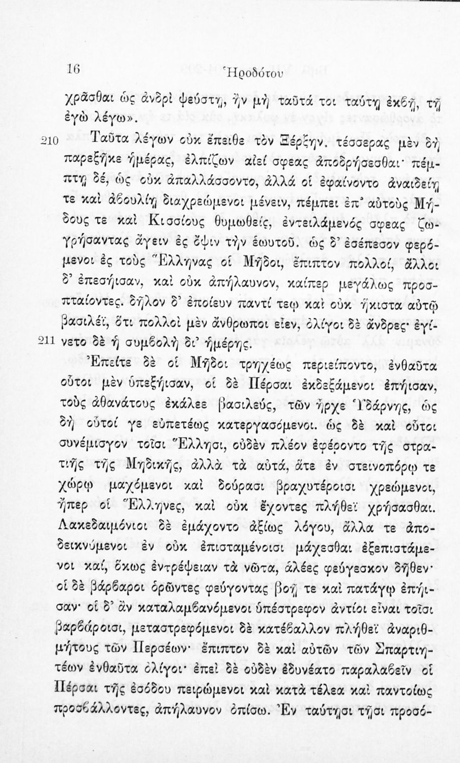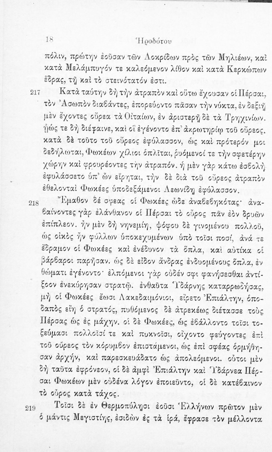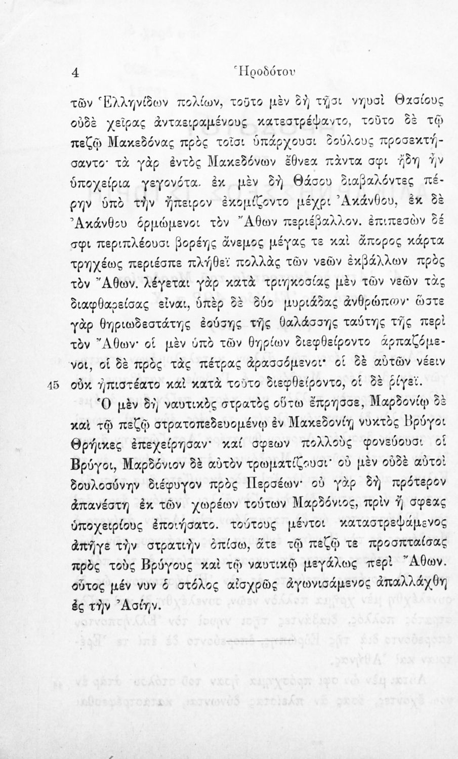 Σχολικό εγχειρίδιο Αρχαίων Ελληνικών Α' Γυμνασίου που περιλαμβάνει αποσπάσματα από την Ιστορία του Ηρόδοτου, εισαγωγή στη ζωή και το έργο του, παρουσίαση της διαλέκτου του, και γλωσσικές και πραγματολογικές σημειώσεις.