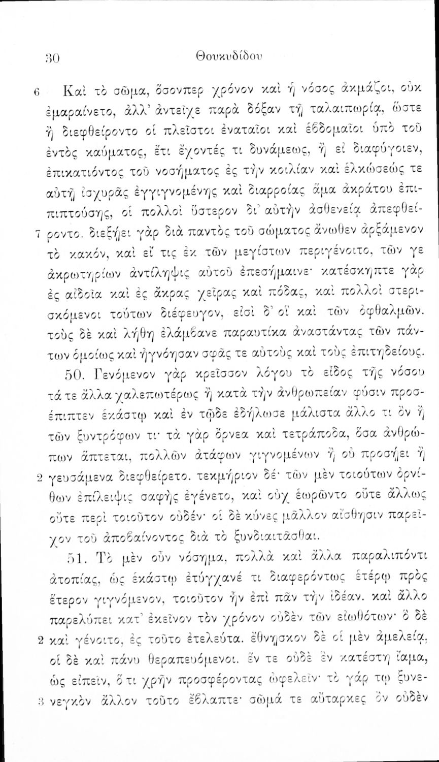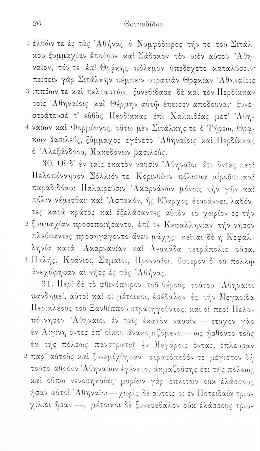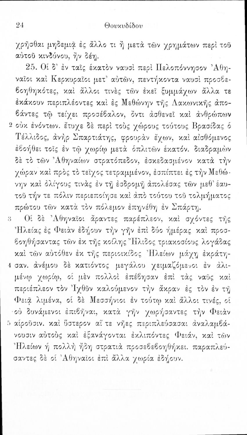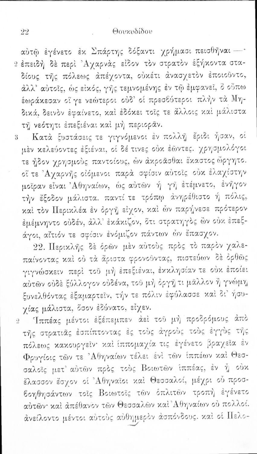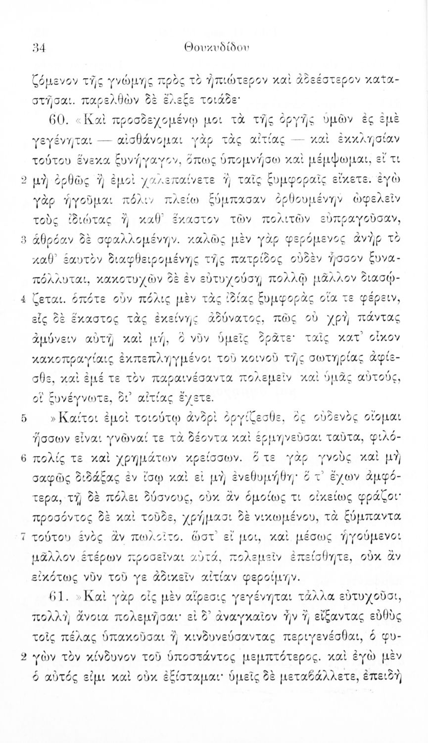 Σχολικό εγχειρίδιο Αρχαίων Ελληνικών για τις Β΄ και Γ΄ Γυμνασίου που περιλαμβάνει σύντομο βιογραφικό σημείωμα του Θουκυδίδη, εισαγωγικά σχόλια στο έργο, κείμενο και ετυμολογικό λεξιλόγιο.