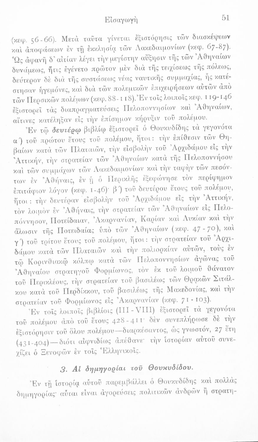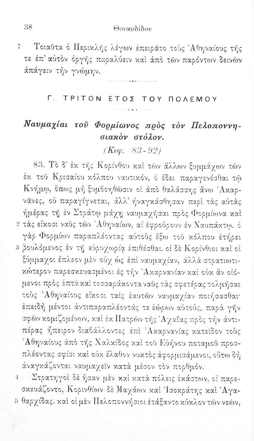 Σχολικό εγχειρίδιο Αρχαίων Ελληνικών Β΄ και Γ΄ Γυμνασίου που περιέχει αποσπάσματα από το έργο του Θουκυδίδη Ιστορία, και με ερμηνευτικές και πραγματολογικές παρατηρήσεις.