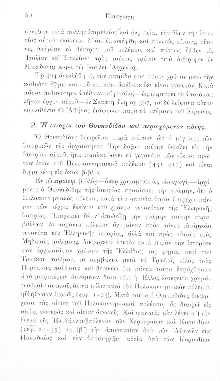 Σχολικό εγχειρίδιο Αρχαίων Ελληνικών Β΄ και Γ΄ Γυμνασίου που περιλαμβάνει εισαγωγή στη ζωή και το έργο του Θουκυδίδη, αποσπάσματα από το δεύτερο βιβλίο της Ιστορίας, πραγματολογικές παρατηρήσεις και ετυμολογικό λεξιλόγιο..