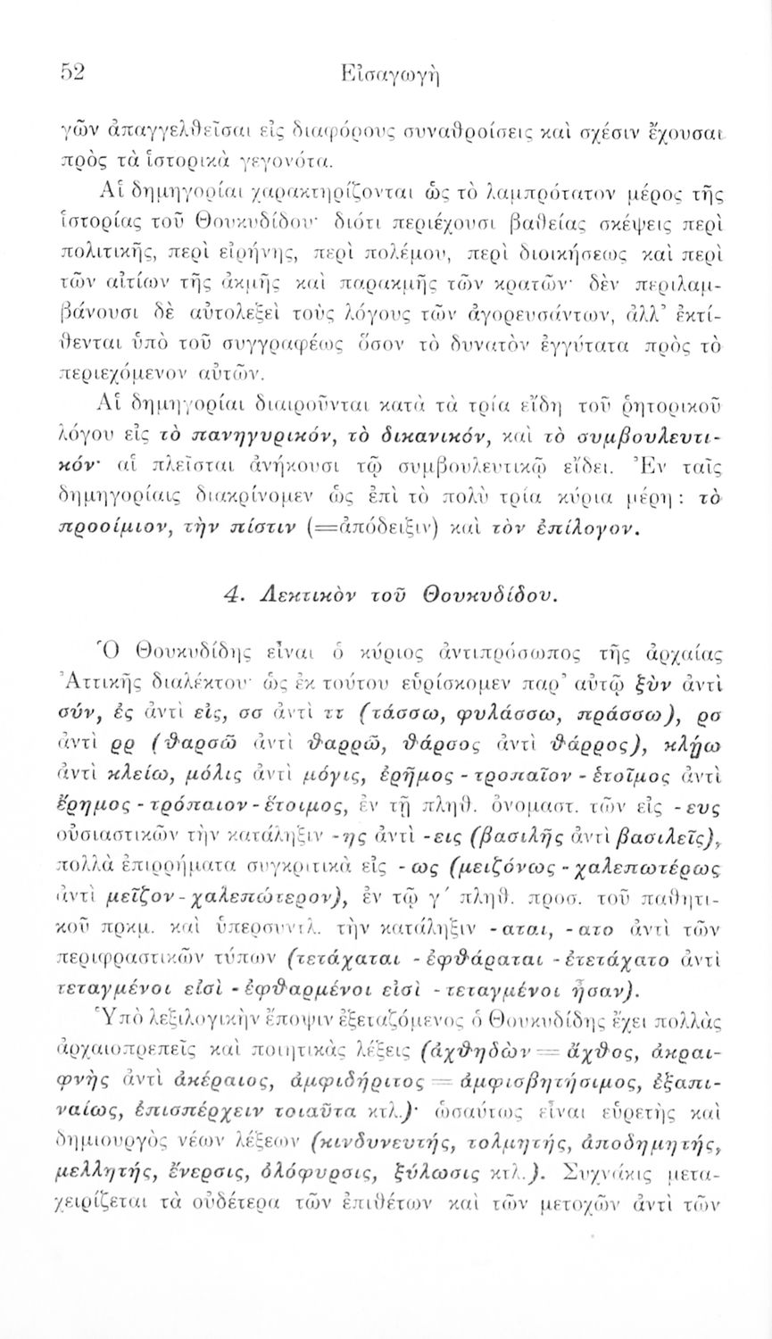 Σχολικό εγχειρίδιο Αρχαίων Ελληνικών Δ΄, Ε΄ και ΣΤ΄ Γυμνασίου που περιέχει αποσπάσματα από το έργο του Θουκυδίδη Ιστορία, ερμηνευτικά και πραγματολογικά σχόλια, και γραμματικές παρατηρήσεις.