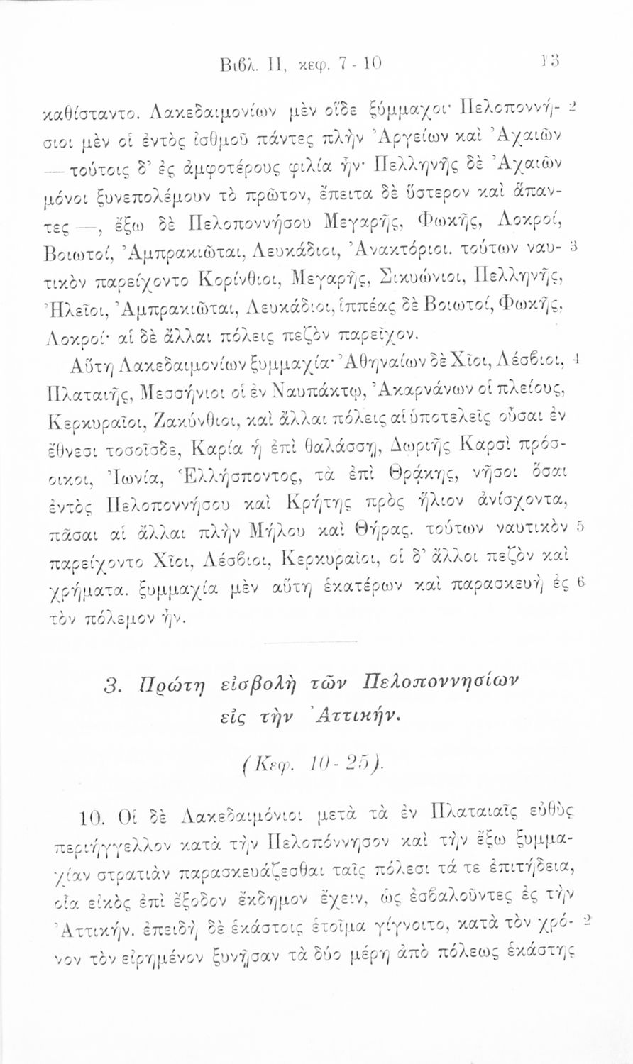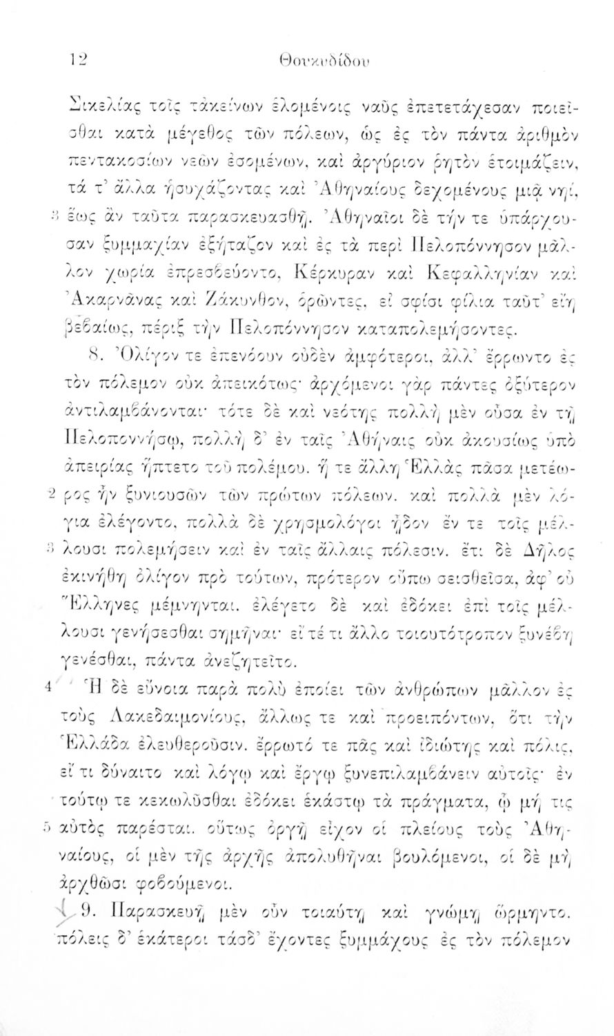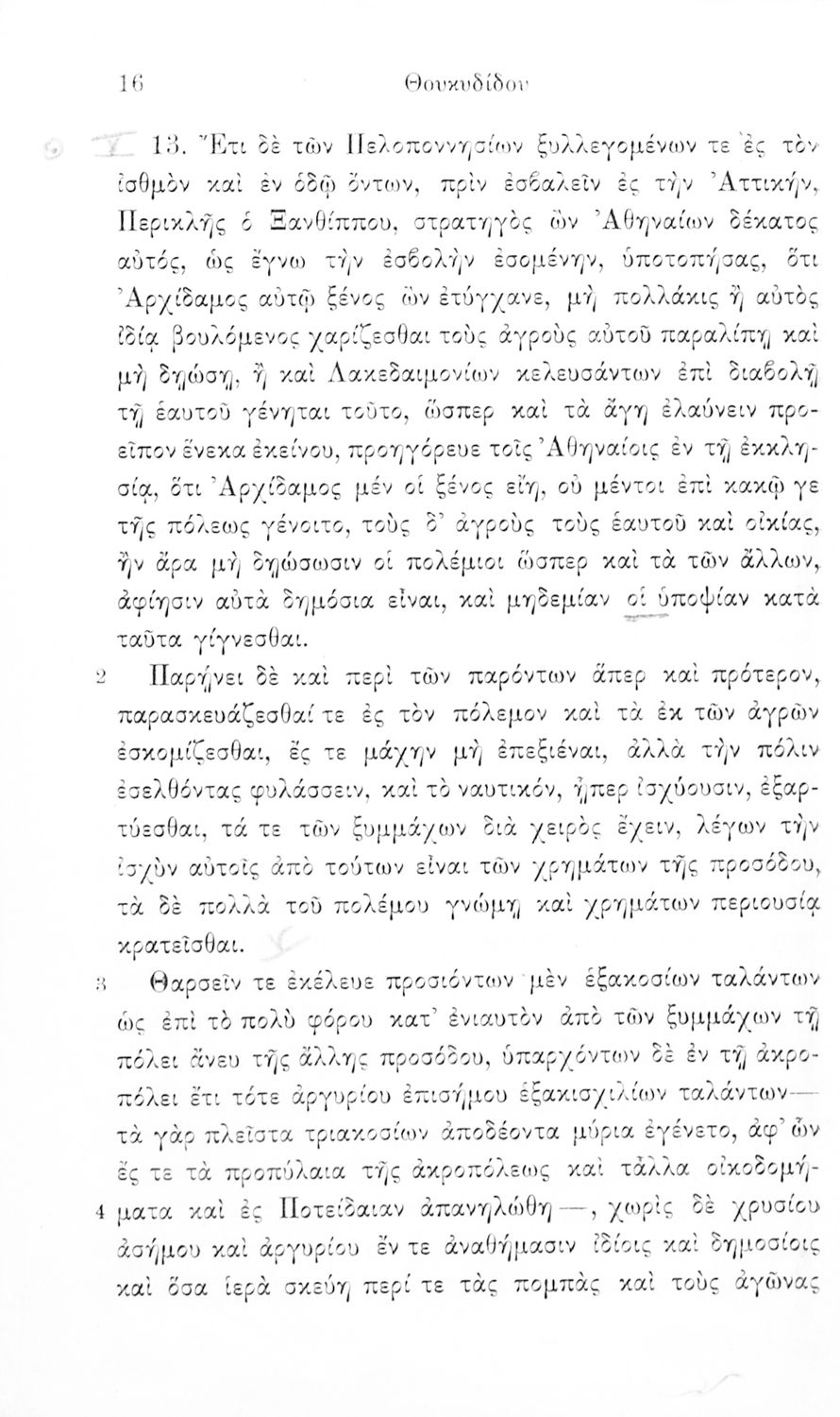 Σχολικό εγχειρίδιο Αρχαίων Ελληνικών Β΄ και Γ΄ Γυμνασίου που περιλαμβάνει εισαγωγή στη ζωή και το έργο του Θουκυδίδη, αποσπάσματα από το δεύτερο βιβλίο της Ιστορίας, πραγματολογικές παρατηρήσεις και ετυμολογικό λεξιλόγιο..
