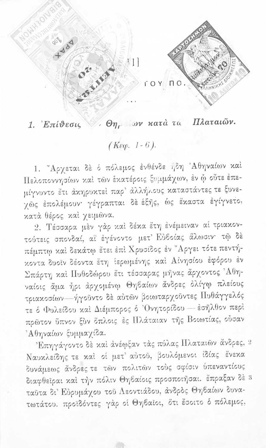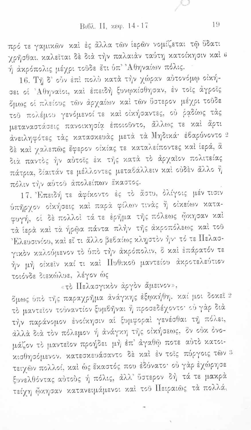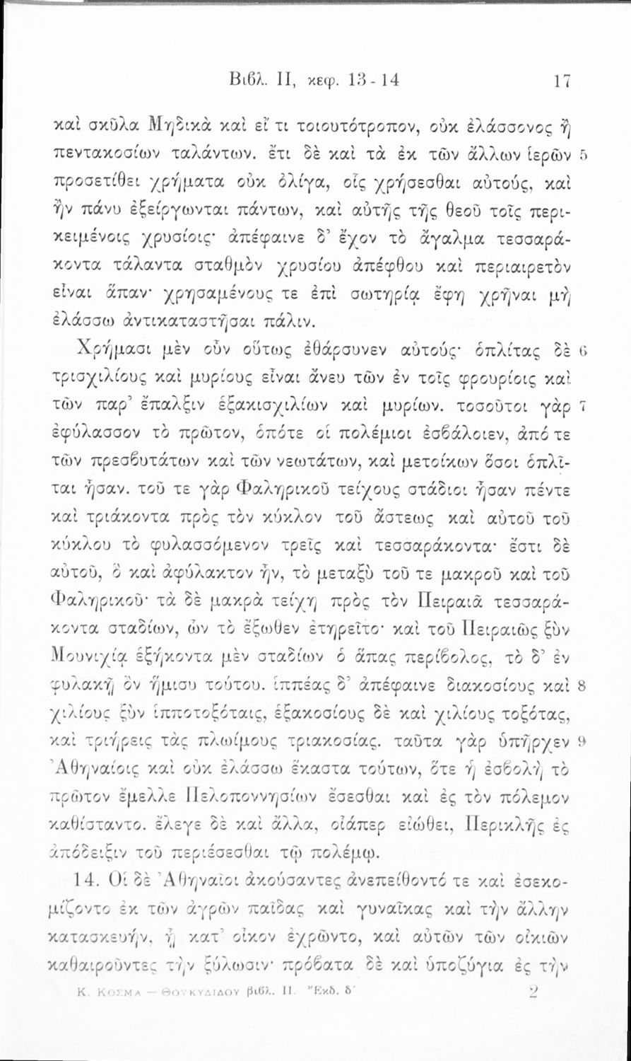 Σχολικό εγχειρίδιο Αρχαίων Ελληνικών Β΄ και Γ΄ Γυμνασίου που περιλαμβάνει εισαγωγή στη ζωή και το έργο του Θουκυδίδη, αποσπάσματα από το δεύτερο βιβλίο της Ιστορίας, πραγματολογικές παρατηρήσεις και ετυμολογικό λεξιλόγιο..