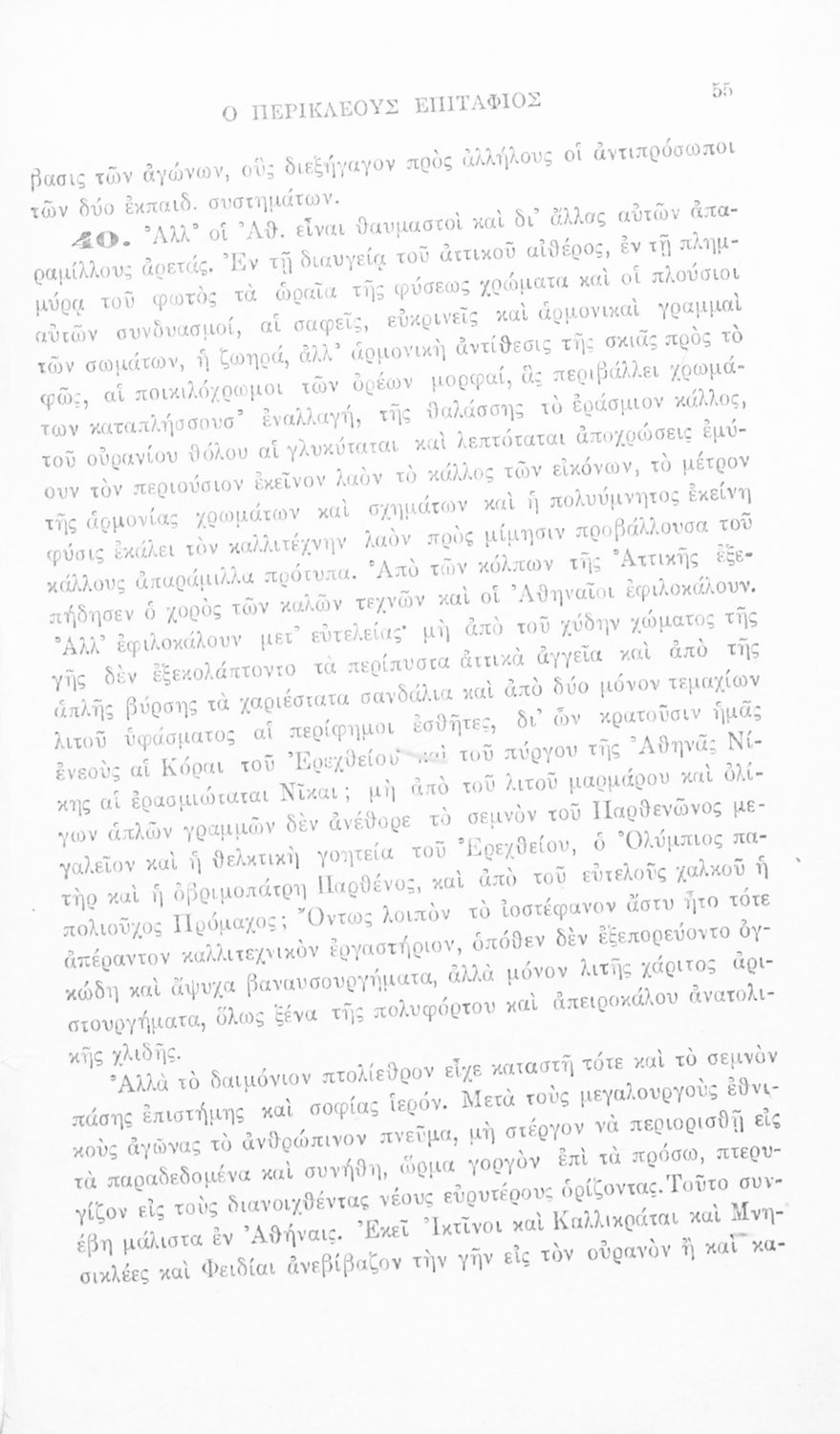 Μαθητικό βοήθημα Αρχαίων Ελληνικών για τους μαθητές της Η' τάξης των Οκταταξίων Γυμνασίων που περιέχει τον Επιτάφιο του Περικλή, μετάφραση, και γραμματικά και συντακτικά σχόλια.