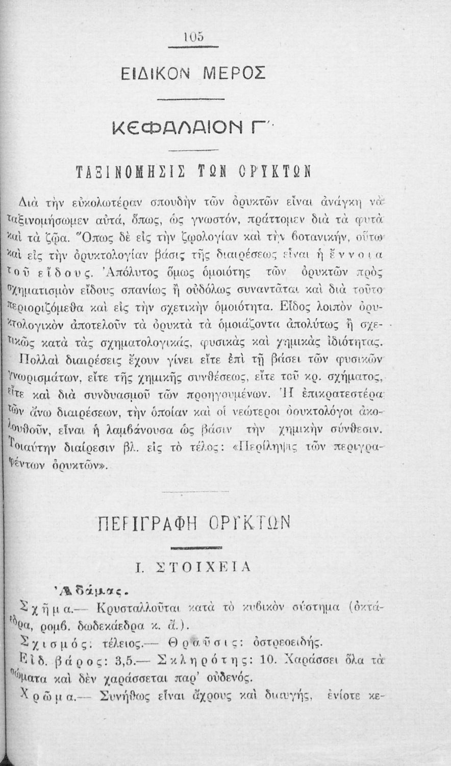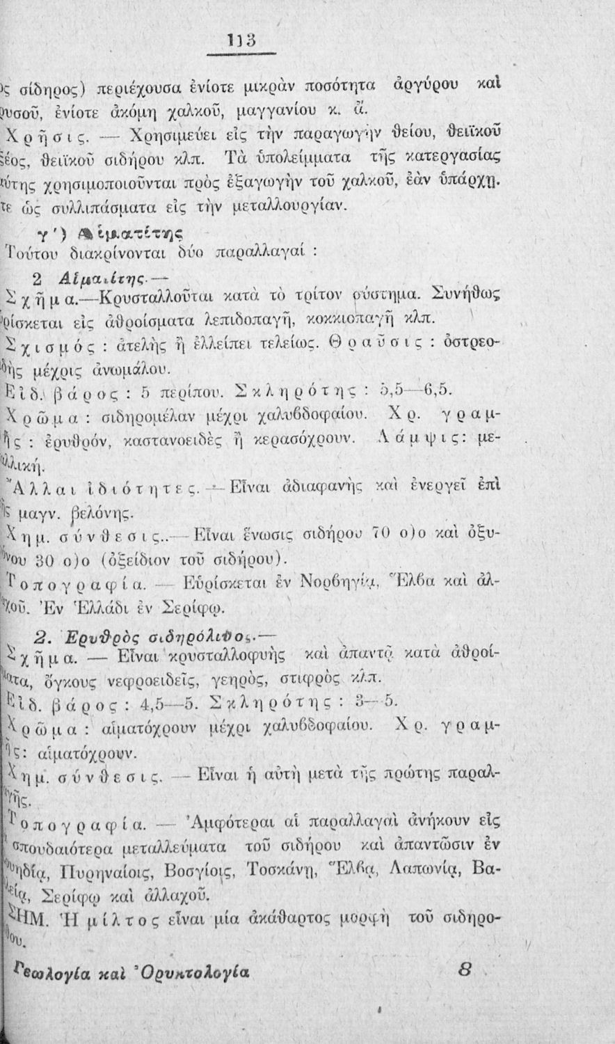 Τίτλος: Γεωλογία και Ορυκτολογία, προς χρήσιν της Β΄ τάξεως των Γυμνασίων