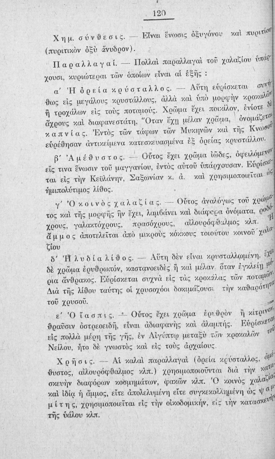 Βαθμίδα εκπαίδευσης: Δευτεροβάθμια Τάξη: Β' Γυμνασίου Μάθημα: Γεωλογία, Ορυκτολογία Γλώσσα: Απλή καθαρεύουσα Παρουσίαση περιεχομένου: Σχολικό εγχειρίδιο Γεωλογίας/Ορυκτολογίας Β΄ Γυμνασίου που εστιάζει στη δυναμική και ιστορική γεωλογία (παλαιοντολογία) και στις διακρίσεις μεταξύ των ορυκτών. |