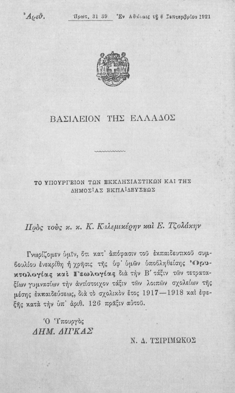 Εκδότης: Μιχαήλ Ι. Σαλίβερος Έτος έκδοσης: 1921 Τόπος έκδοσης: Αθήνα Υπουργική απόφαση / Σύμβαση: 3139/6-9-1921 Έτος έγκρισης: 1921 |