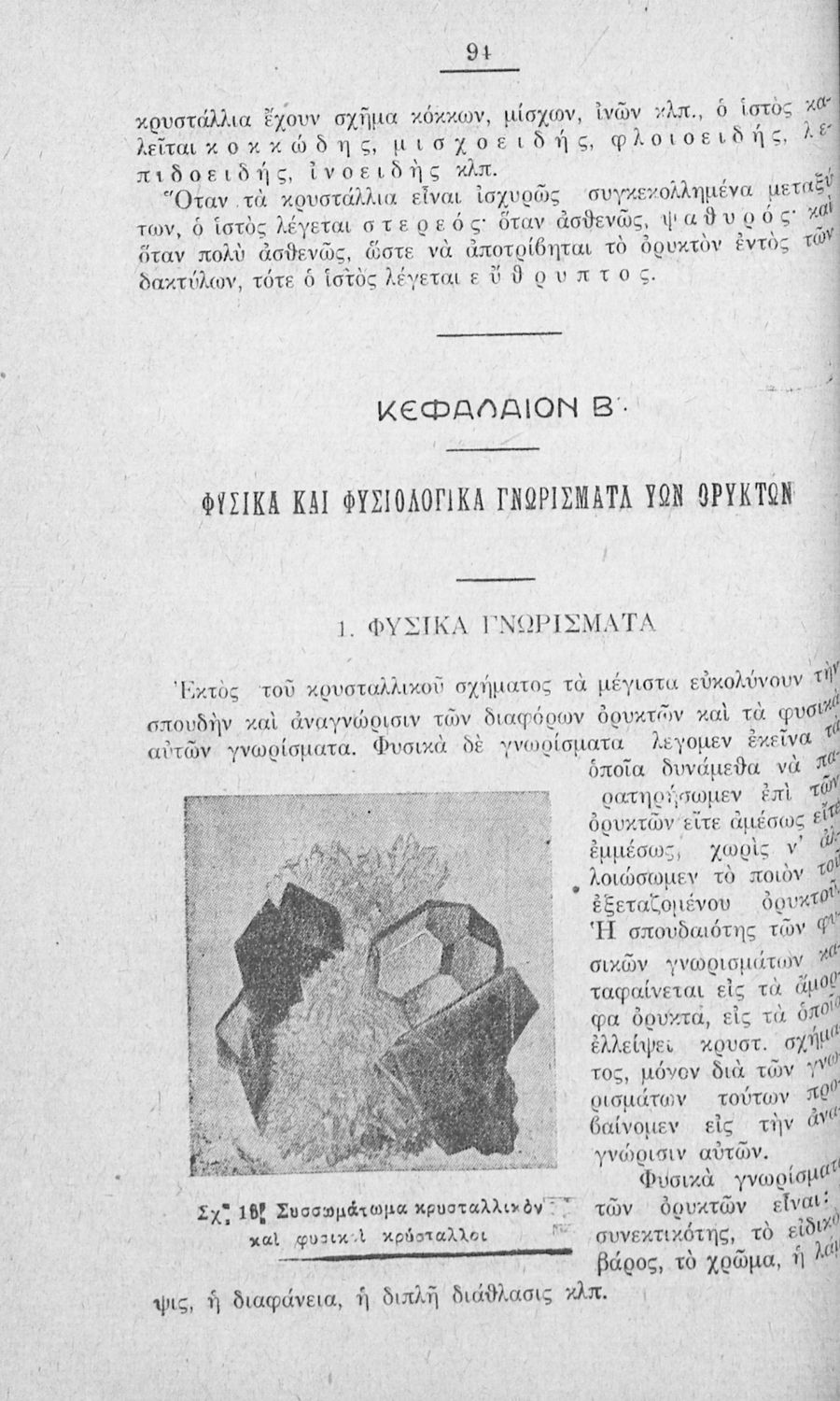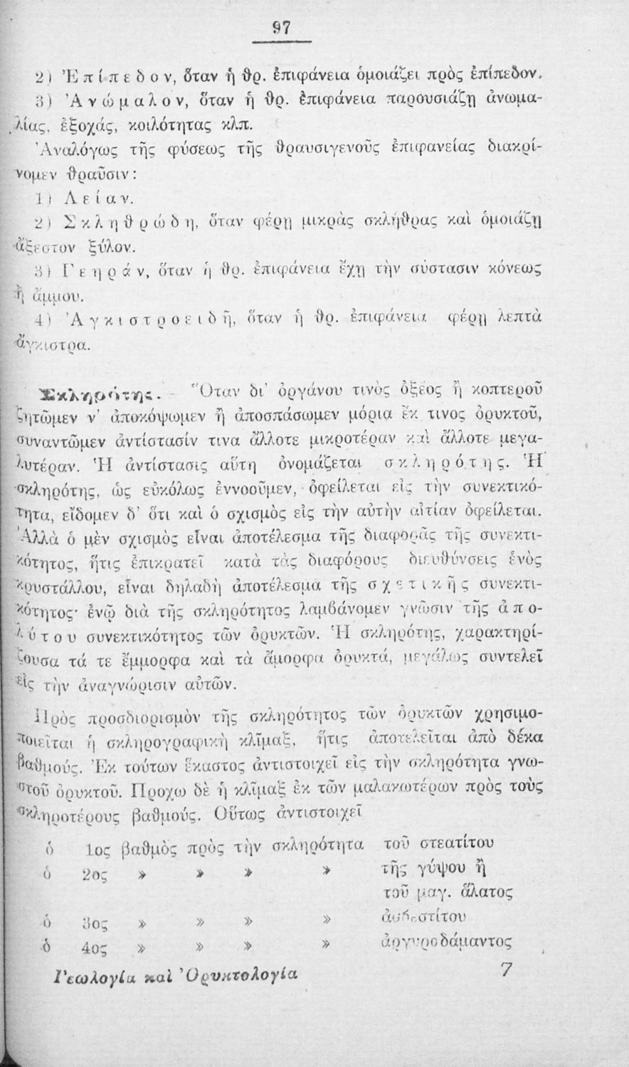 Σχολικό εγχειρίδιο Γεωλογίας/Ορυκτολογίας Β΄ Γυμνασίου που εστιάζει στη δυναμική και ιστορική γεωλογία (παλαιοντολογία) και στις διακρίσεις μεταξύ των ορυκτών.