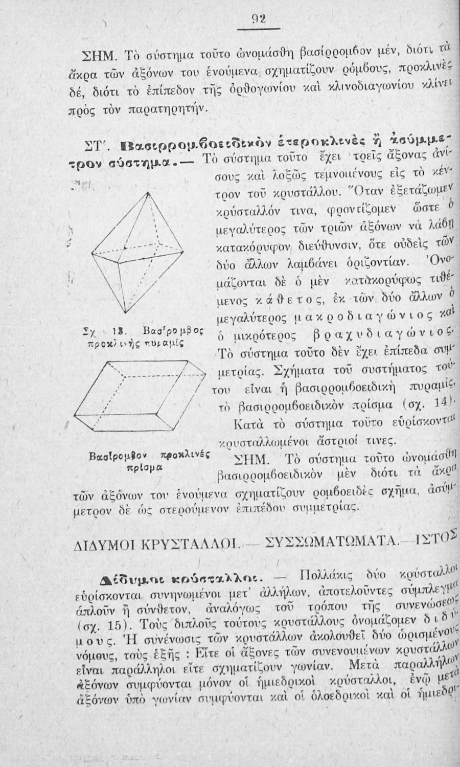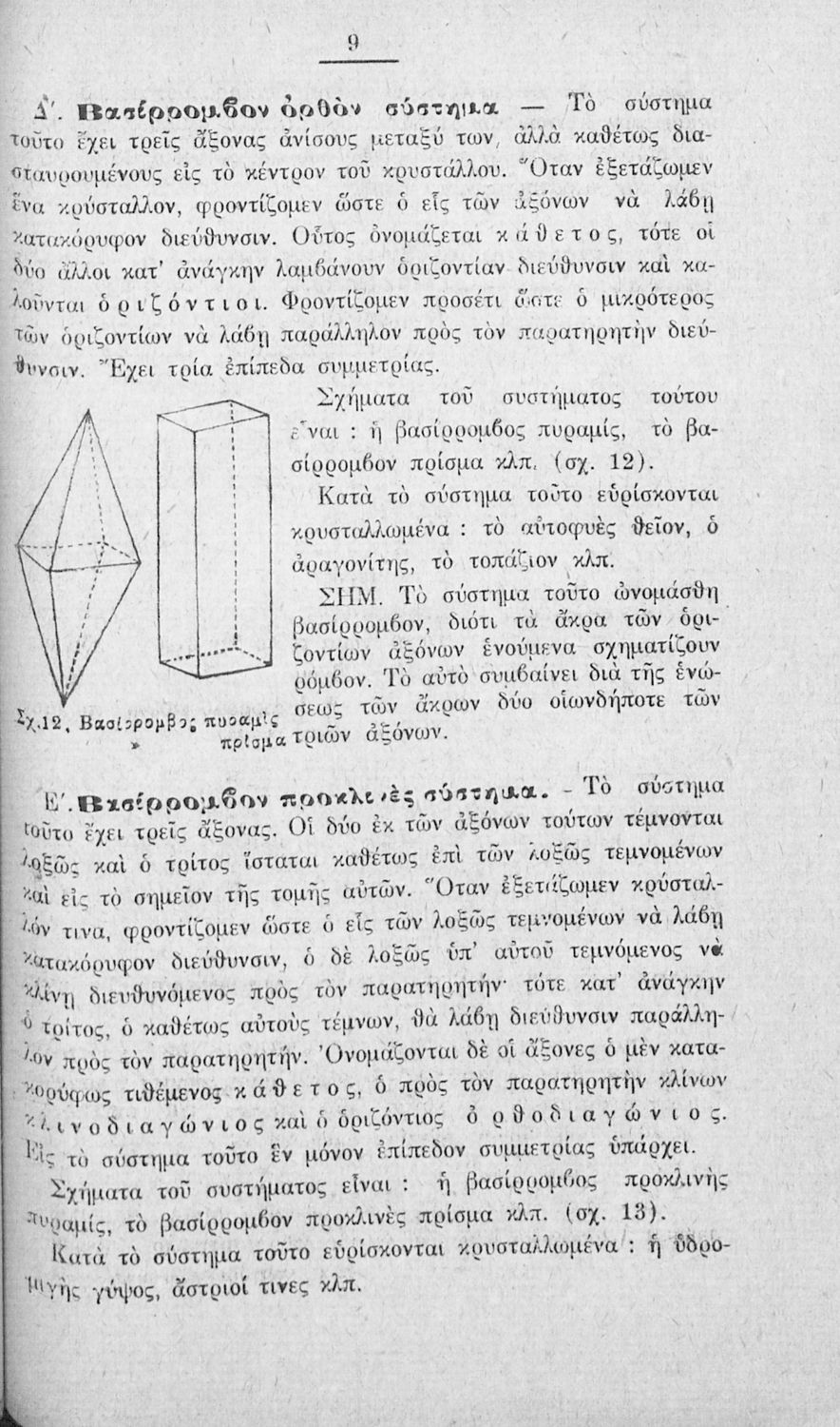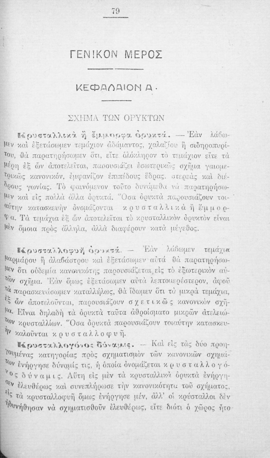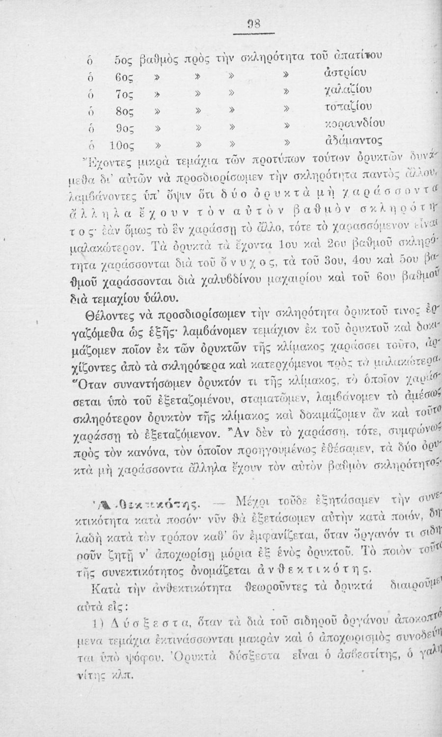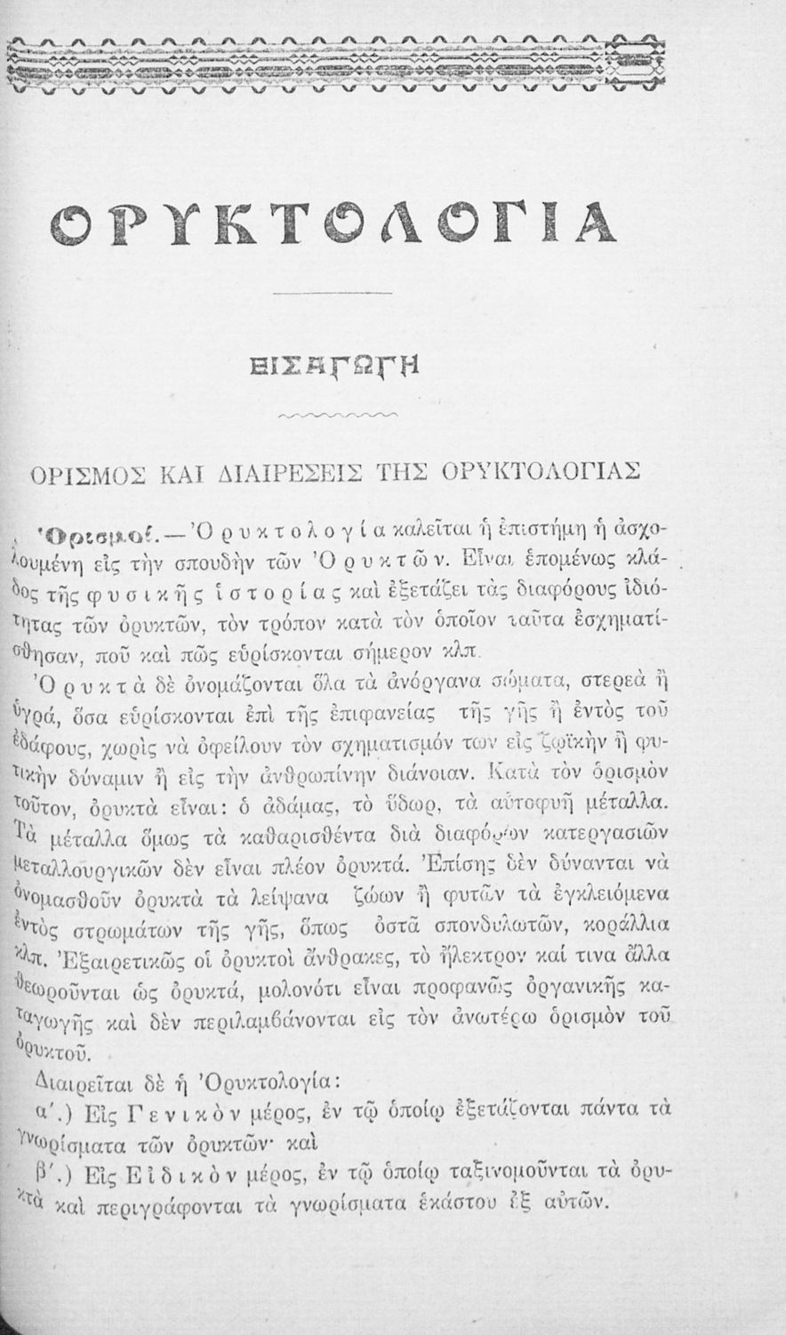 Βαθμίδα εκπαίδευσης: Δευτεροβάθμια Τάξη: Β' Γυμνασίου Μάθημα: Γεωλογία, Ορυκτολογία Γλώσσα: Απλή καθαρεύουσα Παρουσίαση περιεχομένου: Σχολικό εγχειρίδιο Γεωλογίας/Ορυκτολογίας Β΄ Γυμνασίου που εστιάζει στη δυναμική και ιστορική γεωλογία (παλαιοντολογία) και στις διακρίσεις μεταξύ των ορυκτών. |