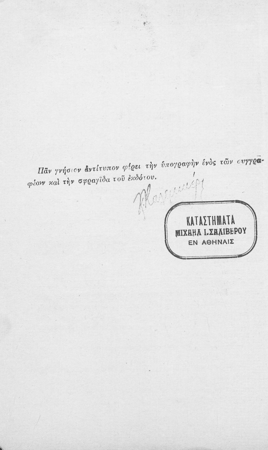 Εντοπισμός πρωτοτύπου: Ελληνικό Λογοτεχνικό και Ιστορικό Αρχείο Κωδικός βιβλιοθήκης: 1921 ΚΑΛ |