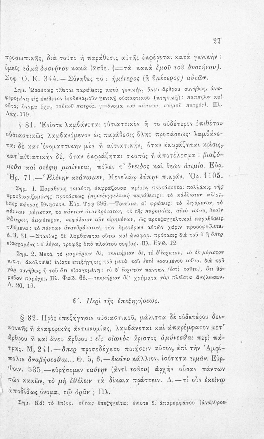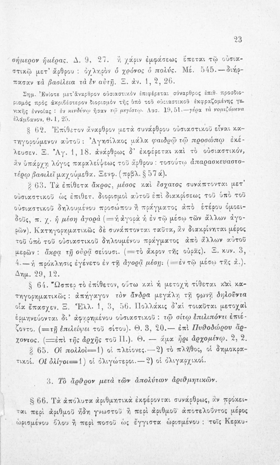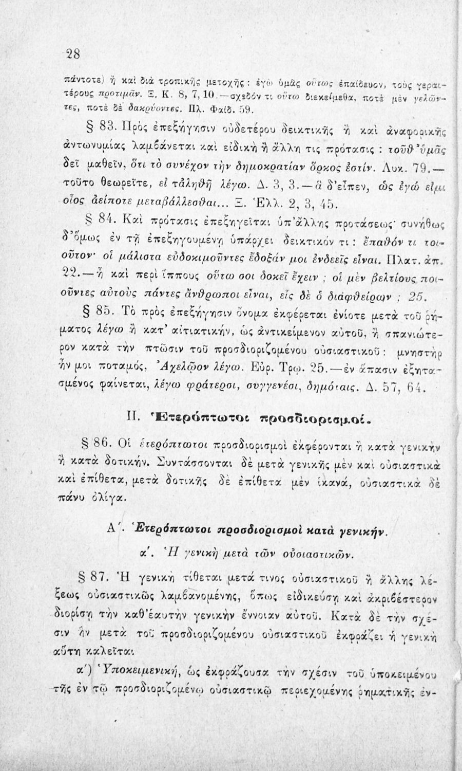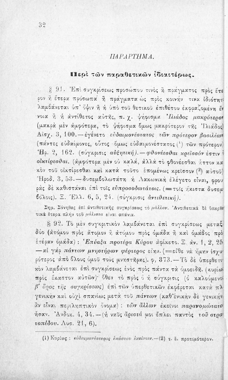 Σχολικό εγχειρίδιο Αρχαίων Ελληνικών για τα Ελληνικά Σχολεία και τα Ανώτερα Παρθεναγωγεία που εξετάζει τα μέρη του λόγου και την σύνταξή τους.